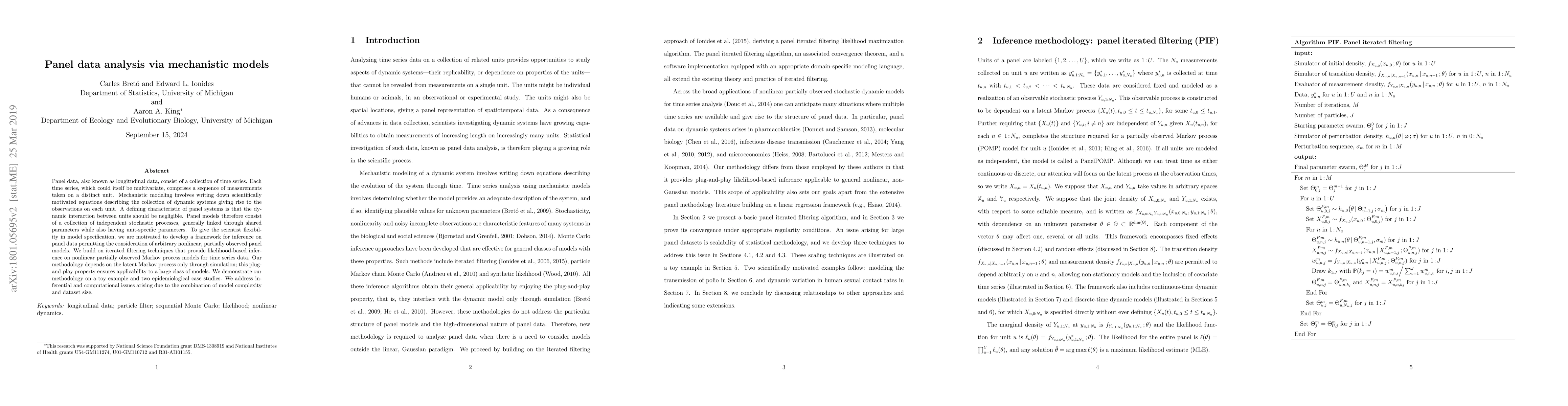 This paper develops a framework for analyzing panel data using mechanistic models, focusing on nonlinear, partially observed systems. It leverages iterated filtering techniques for likelihood-based inference, demonstrating applicability through a toy example and epidemiological case studies while addressing computational challenges.
