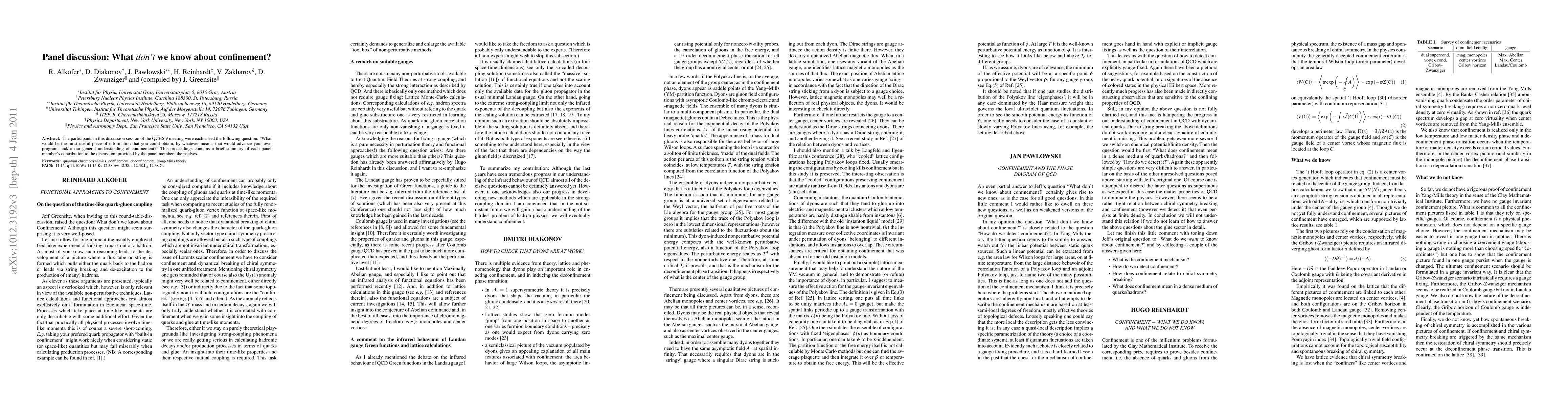 This paper summarizes a panel discussion from the QCHS 9 meeting where experts identified the most useful unknown information needed to advance their research and understanding of confinement. Each participant shared insights on what specific knowledge gaps hinder progress in their respective programs.