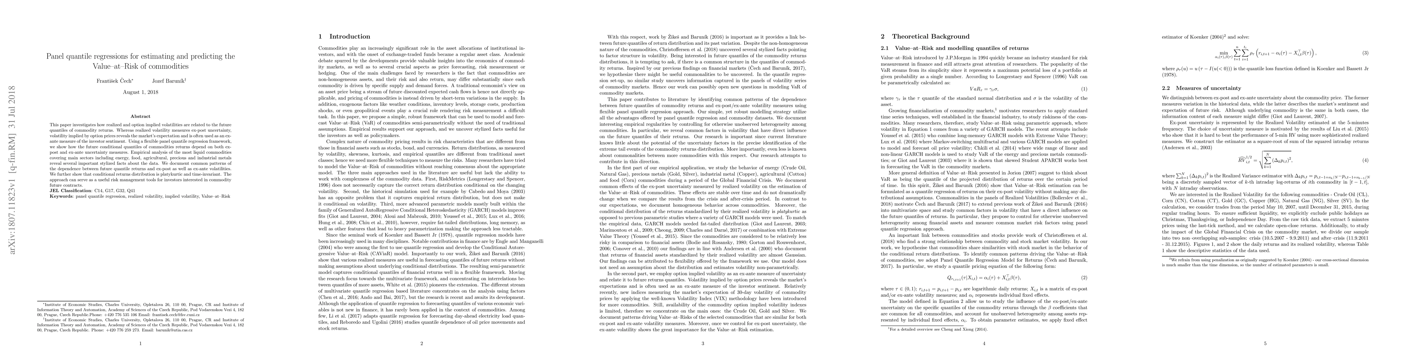 This paper investigates how realized and option implied volatilities are related to the future quantiles of commodity returns. Whereas realized volatility measures ex-post uncertainty, volatility implied by option prices reveals the market's expectation and is often used as an ex-ante measure of the investor sentiment. Using a flexible panel quantile regression framework, we show how the future conditional quantiles of commodities returns depend on both ex-post and ex-ante uncertainty measures. Empirical analysis of the most liquid commodities covering main sectors including energy, food, agricultural, precious and industrial metals reveal several important stylized facts about the data. We document common patterns of the dependence between future quantile returns and ex-post as well as ex-ante volatilities. We further show that conditional returns distribution is platykurtic and time-invariant. The approach can serve as a useful risk management tools for investors interested in commodity future contracts.
