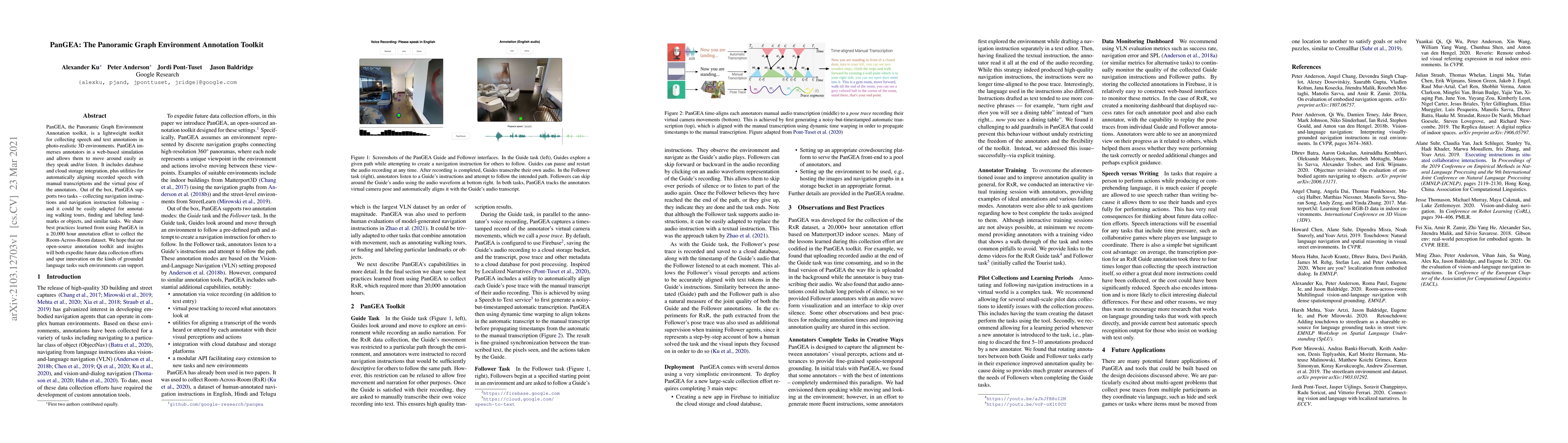 PanGEA is a web-based toolkit for collecting speech and text annotations in 3D environments, facilitating immersive annotator experiences and automatic alignment of speech and annotators' poses. It supports tasks like navigation instructions and can be adapted for various spatial data collection efforts.