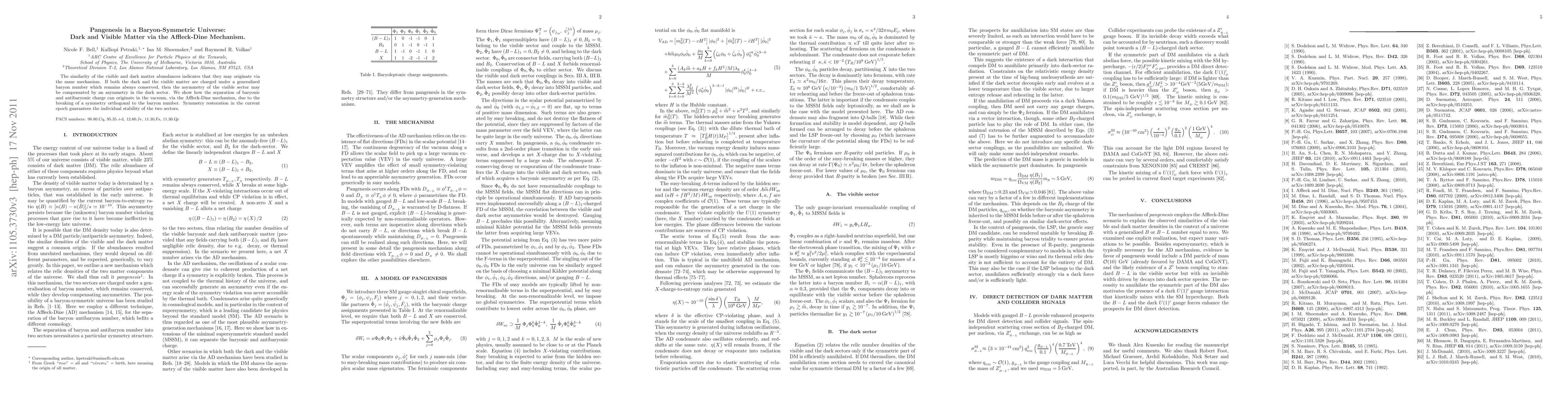 This paper explores the origin of both dark and visible matter through the Affleck-Dine mechanism in a baryon-symmetric universe, suggesting that their similar abundances imply a shared genesis. It posits that a symmetry orthogonal to baryon number can lead to the separation of baryonic and antibaryonic charges, ensuring the stability of each sector today.