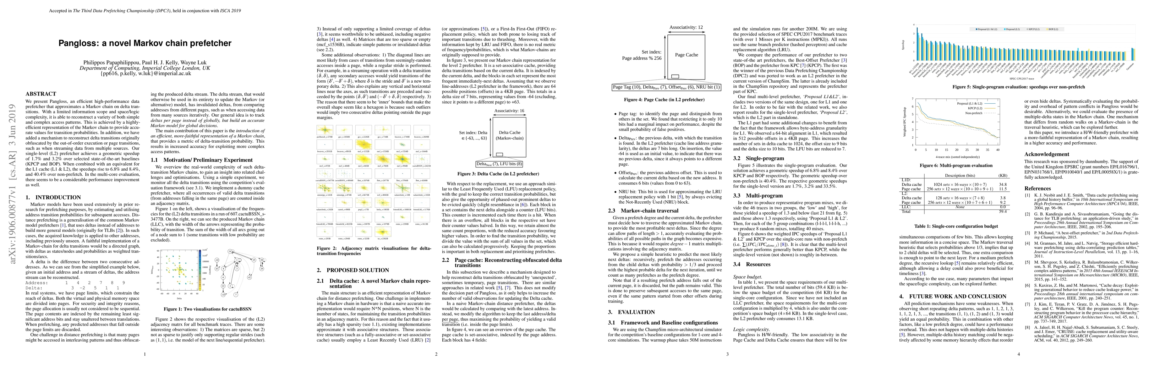 Pangloss is an efficient, high-performance data prefetcher that approximates a Markov chain on delta transitions, achieving notable speedups over state-of-the-art baselines and non-prefetch scenarios. The prefetcher reconstructs complex access patterns with minimal complexity and improves performance significantly in both single-level and multi-core evaluations.