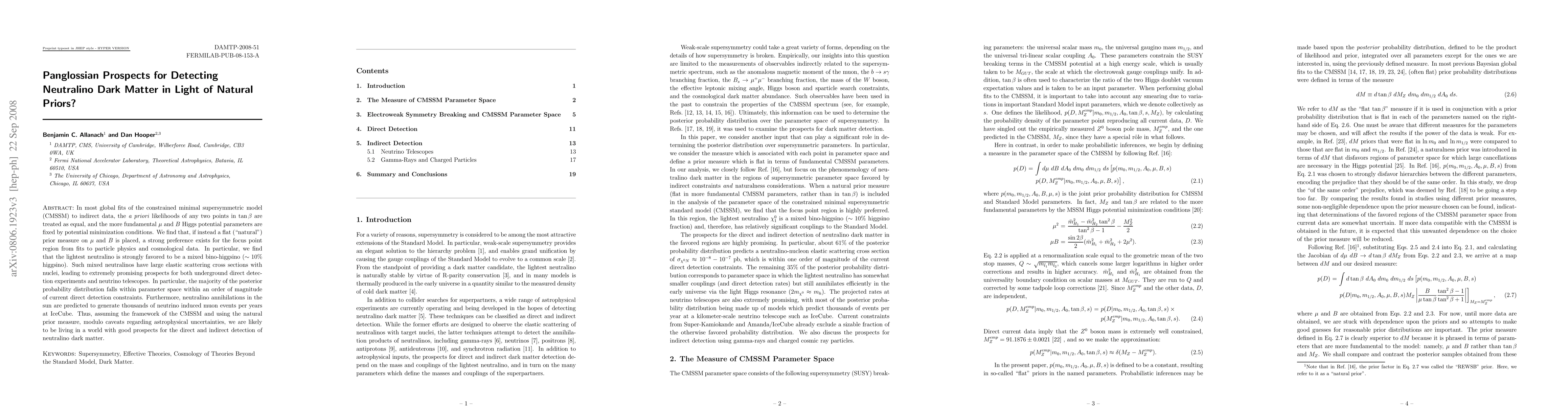 In most global fits of the constrained minimal supersymmetric model (CMSSM) to indirect data, the a priori likelihoods of any two points in tan beta are treated as equal, and the more fundamental mu and B Higgs potential parameters are fixed by potential minimization conditions. We find that, if instead a flat ("natural")prior measure on mu and B is placed, a strong preference exists for the focus point region from fits to particle physics and cosmological data. In particular, we find that the lightest neutralino is strongly favored to be a mixed bino-higgsino (~10% higgsino). Such mixed neutralinos have large elastic scattering cross sections with nuclei, leading to extremely promising prospects for both underground direct detection experiments and neutrino telescopes. In particular, the majority of the posterior probability distribution falls within parameter space within an order of magnitude of current direct detection constraints. Furthermore, neutralino annihilations in the sun are predicted to generate thousands of neutrino induced muon events per years at IceCube. Thus, assuming the framework of the CMSSM and using the natural prior measure, modulo caveats regarding astrophysical uncertainties, we are likely to be living in a world with good prospects for the direct and indirect detection of neutralino dark matter.