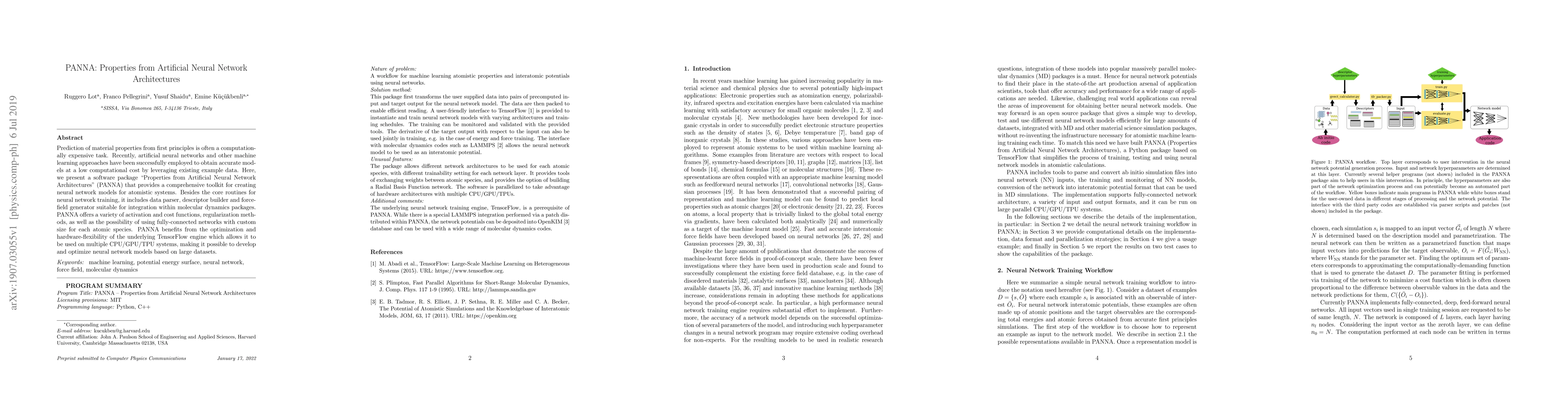 PANNA is a software package designed to create neural network models for predicting material properties using artificial neural networks, offering tools for training, data parsing, and force-field generation, and leveraging TensorFlow for optimization across various hardware platforms.