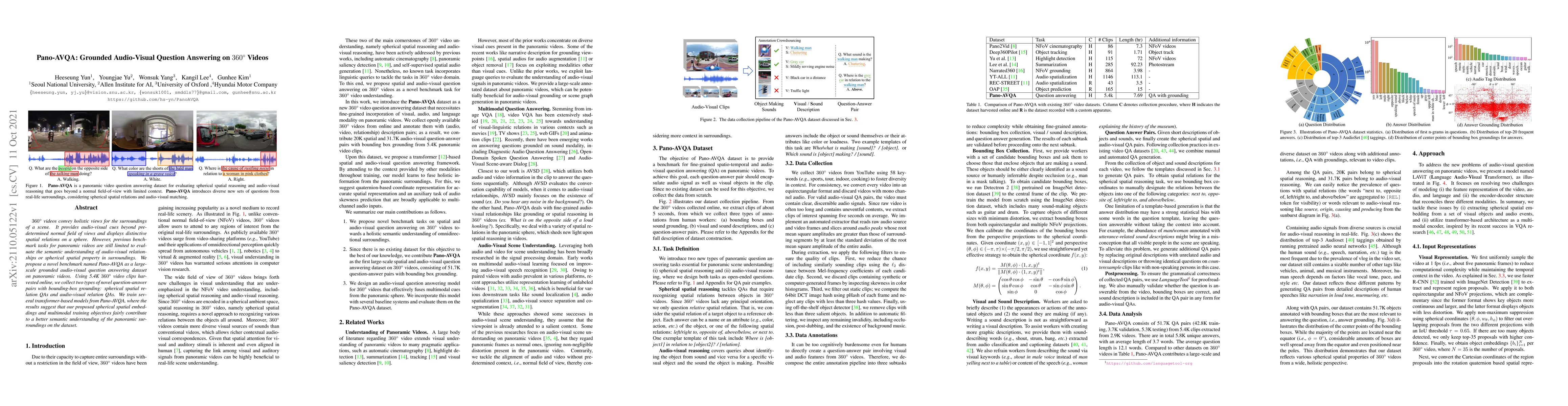 The paper introduces Pano-AVQA, a new large-scale dataset for grounded audio-visual question answering on 360° videos, featuring spherical spatial relation and audio-visual relation QAs. Experiments with transformer-based models show that the proposed spherical spatial embeddings and multimodal training objectives enhance semantic understanding of panoramic surroundings.