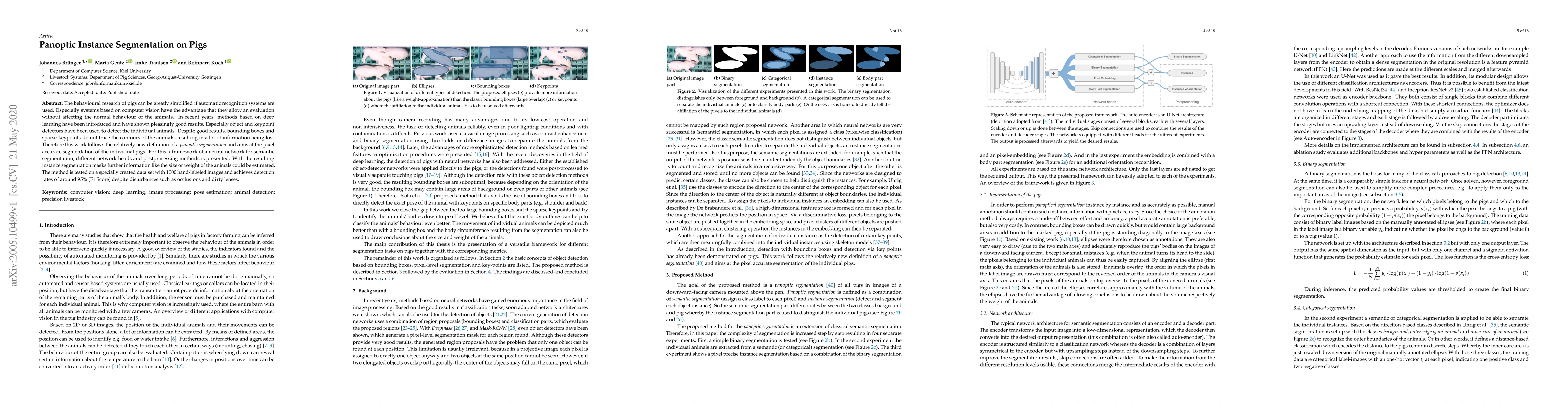 This paper proposes a panoptic instance segmentation framework for pigs using deep learning to accurately trace animal contours, enabling better behavioral research without disturbing the animals. The method achieves a 95% F1 score on a custom dataset, demonstrating effective performance despite occlusions and lens dirt.