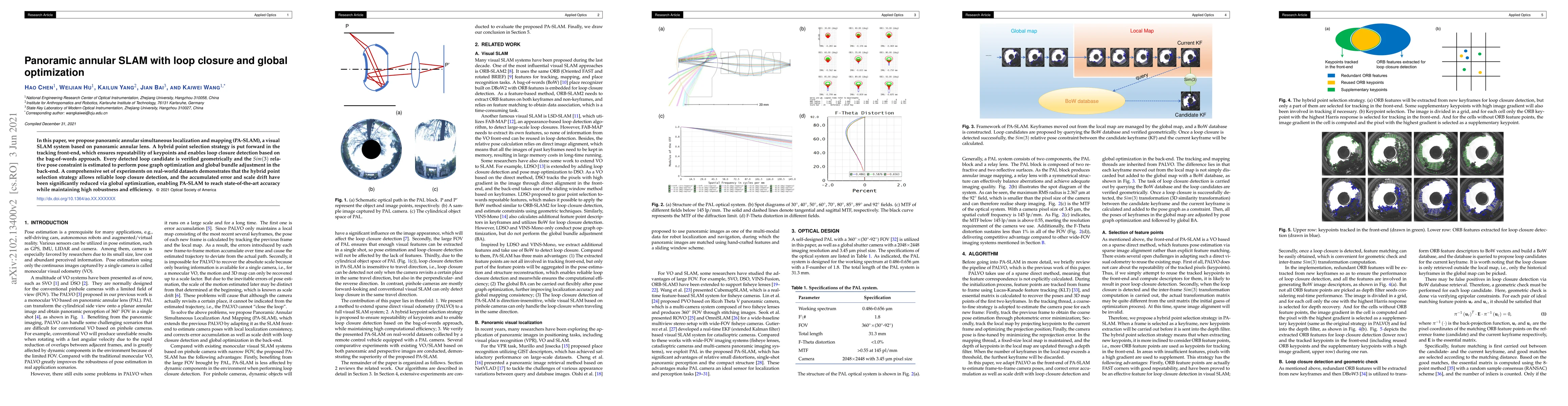 This paper presents PA-SLAM, a visual SLAM system utilizing panoramic annular lenses, which employs a hybrid point selection strategy for reliable loop closure detection. The system achieves state-of-the-art accuracy through global optimization and bundle adjustment, significantly reducing accumulated error and scale drift.