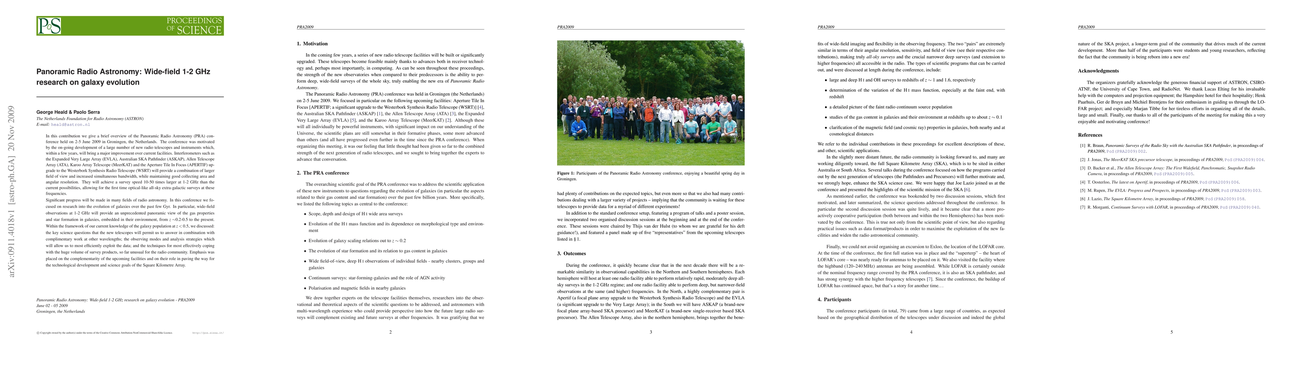 In this contribution we give a brief overview of the Panoramic Radio Astronomy (PRA) conference held on 2-5 June 2009 in Groningen, the Netherlands. The conference was motivated by the on-going development of a large number of new radio telescopes and instruments which, within a few years, will bring a major improvement over current facilities. Interferometers such as the EVLA, ASKAP, ATA, MeerKAT, and APERTIF will provide a combination of larger field of view and increased simultaneous bandwidth, while maintaining good collecting area and angular resolution. They will achieve a survey speed 10-50 times larger at 1-2 GHz than the current possibilities, allowing for the first time optical-like all-sky extra-galactic surveys at these frequencies. Significant progress will be made in many fields of radio astronomy. In this conference we focused on research into the evolution of galaxies over the past few Gyr. In particular, wide-field observations at 1-2 GHz will provide an unprecedented panoramic view of the gas properties and star formation in galaxies, embedded in their environment, from z~0.2-0.5 to the present. Within the framework of our current knowledge of the galaxy population at z<0.5, we discussed: the key science questions that the new telescopes will permit us to answer in combination with complimentary work at other wavelengths; the observing modes and analysis strategies which will allow us to most efficiently exploit the data; and the techniques for most effectively coping with the huge volume of survey products, so far unusual for the radio community. Emphasis was placed on the complementarity of the upcoming facilities and on their role in paving the way for the technological development and science goals of the Square Kilometre Array.