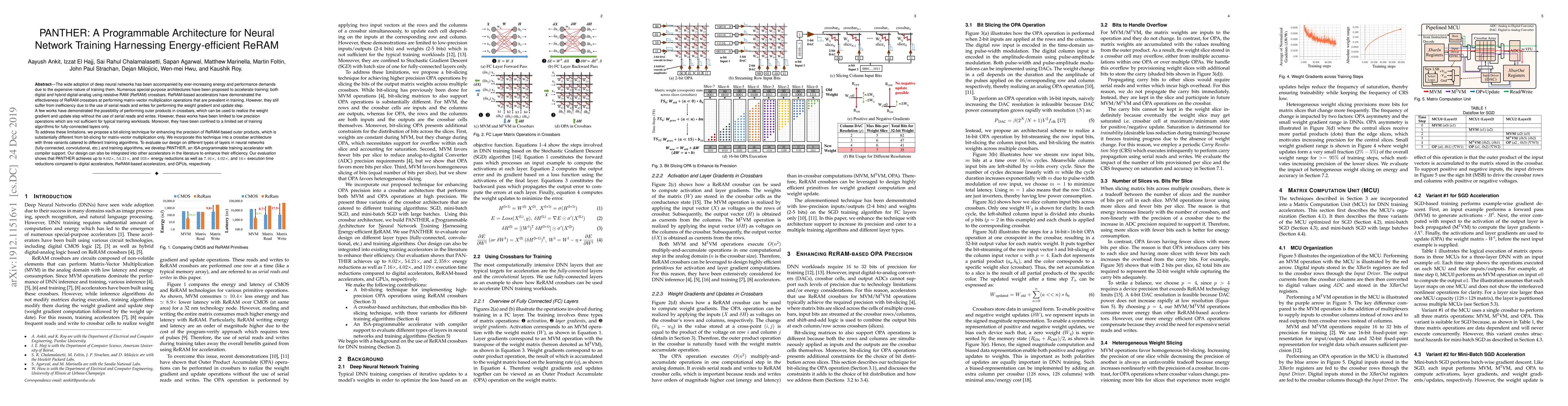 The paper proposes PANTHER, a programmable architecture for neural network training using energy-efficient ReRAM, which enhances precision for crossbar operations and supports various training algorithms. PANTHER achieves significant energy and time reductions compared to digital accelerators, ReRAM-based accelerators, and GPUs.