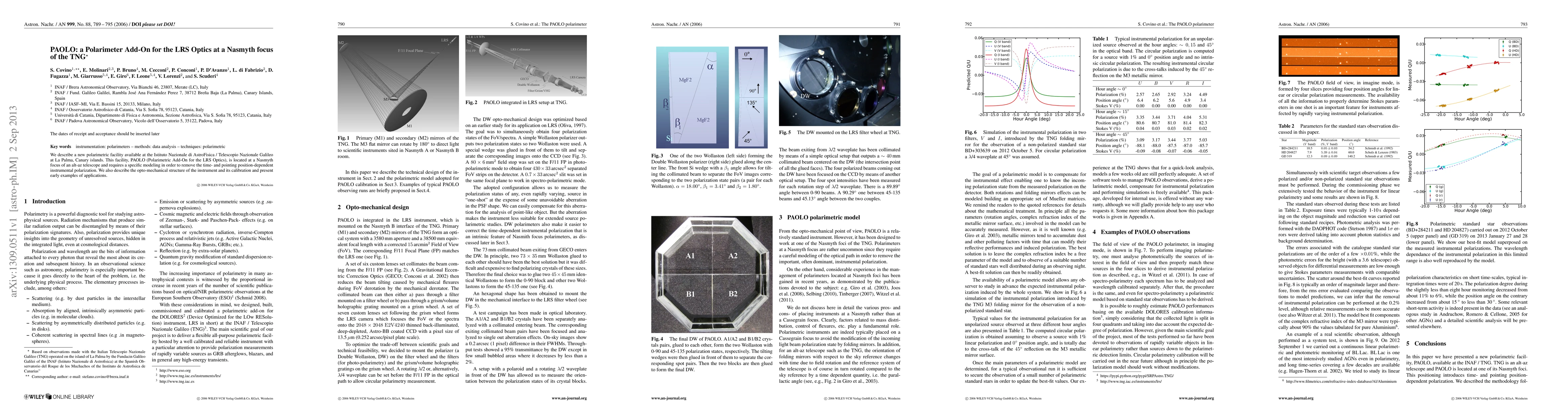 Summary: PAOLO is a newly introduced polarimetric instrument at the TNG telescope in La Palma, designed to measure instrumental polarization at the Nasmyth focus. It includes specific modeling to correct for polarization effects, and its opto-mechanical design and calibration are detailed, with initial applications demonstrated.