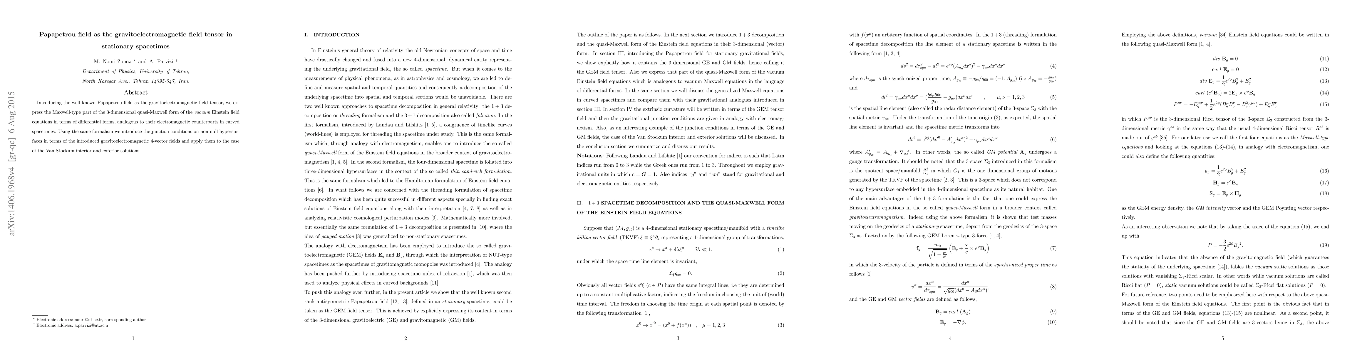 Researchers reframe the Papapetrou field as a gravitoelectromagnetic field tensor to describe vacuum Einstein equations in stationary spacetimes, enabling application of junction conditions on non-null hypersurfaces.