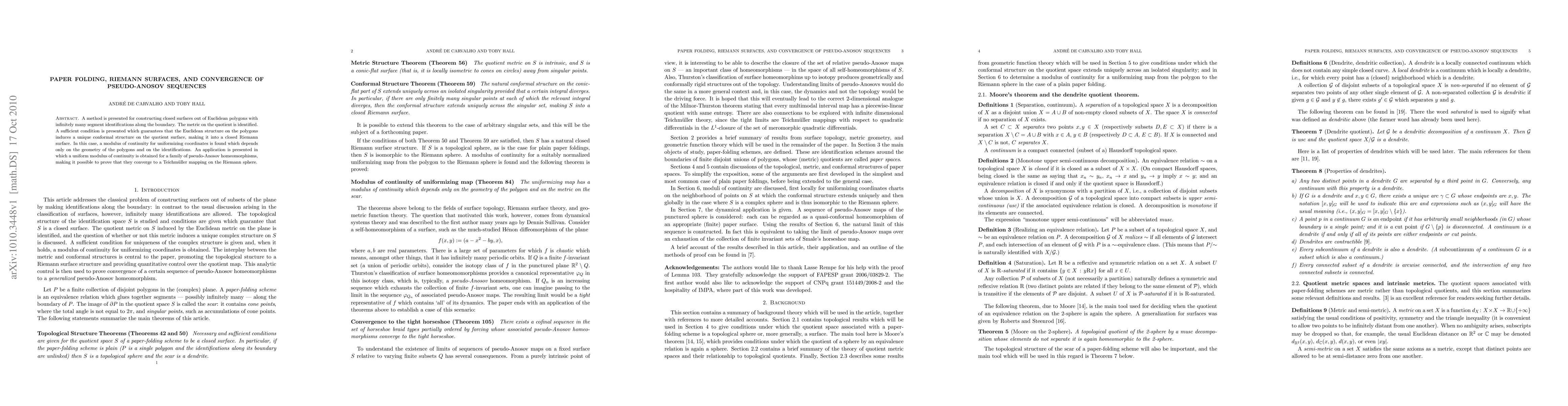 Researchers developed a method to construct closed Riemann surfaces from Euclidean polygons with infinite segment identifications, leading to a unique conformal structure on the quotient surface. This discovery enables the proof of convergence to a Teichm"uller mapping for pseudo-Anosov homeomorphisms.