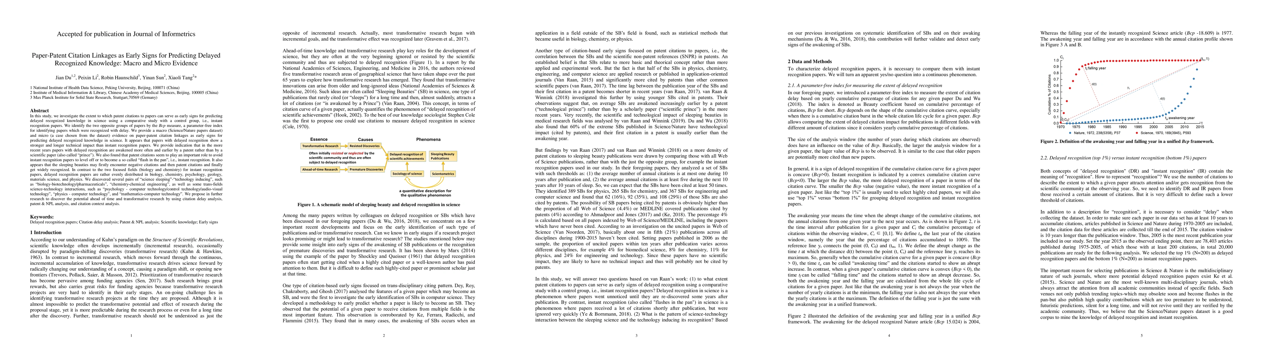 This study explores how patent citations to scientific papers can predict delayed recognition of knowledge, contrasting delayed and instant recognition papers. Macro and micro evidence show that papers with delayed recognition exhibit stronger and longer technical impacts, often first encountering negative citations followed by patent citations before gaining widespread recognition.