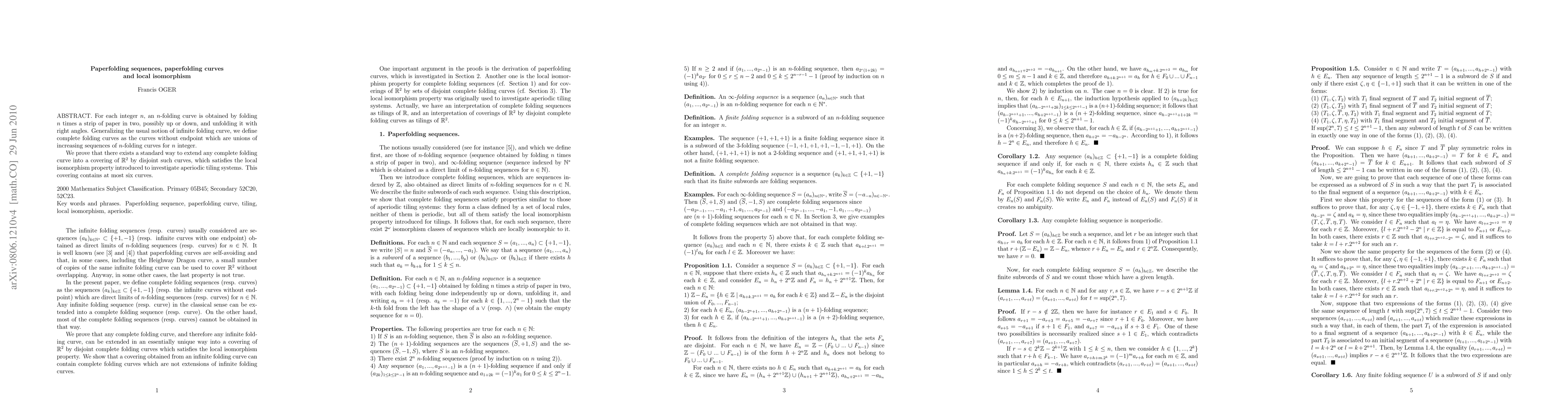 Researchers prove a way to extend complete folding curves into coverings of the plane with at most six disjoint curves, satisfying local isomorphism properties.