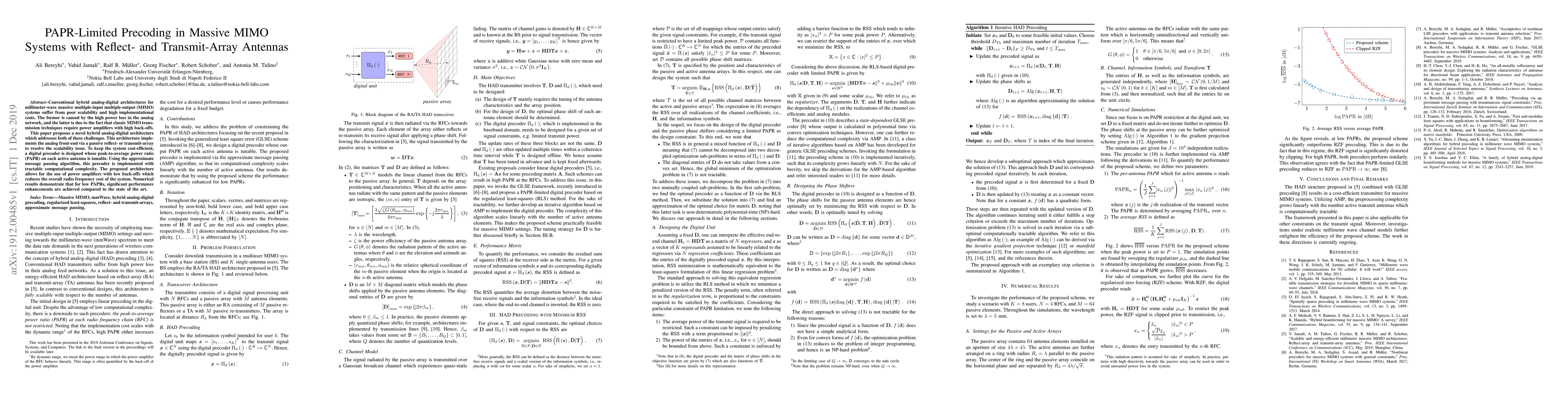This paper proposes a novel hybrid analog-digital architecture for millimeter-wave massive MIMO systems using reflect- or transmit-array antennas to enhance scalability and reduce costs. It introduces a digital precoder with tunable peak-to-average power ratio, enabling low back-off power amplifiers and significant performance improvements over existing methods.