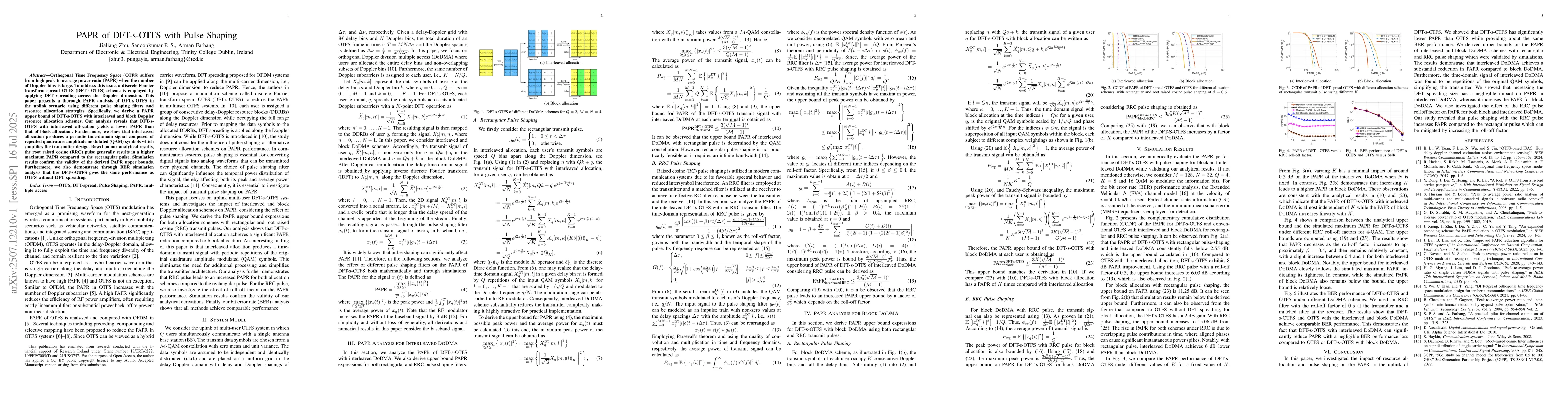 Orthogonal Time Frequency Space (OTFS) suffers from high peak-to-average power ratio (PAPR) when the number of Doppler bins is large. To address this issue, a discrete Fourier transform spread OTFS (DFT-s-OTFS) scheme is employed by applying DFT spreading across the Doppler dimension. This paper presents a thorough PAPR analysis of DFT-s-OTFS in the uplink scenario using different pulse shaping filters and resource allocation strategies. Specifically, we derive a PAPR upper bound of DFT-s-OTFS with interleaved and block Doppler resource allocation schemes. Our analysis reveals that DFT-s-OTFS with interleaved allocation yields a lower PAPR than that of block allocation. Furthermore, we show that interleaved allocation produces a periodic time-domain signal composed of repeated quadrature amplitude modulated (QAM) symbols which simplifies the transmitter design. Based on our analytical results, the root raised cosine (RRC) pulse generally results in a higher maximum PAPR compared to the rectangular pulse. Simulation results confirm the validity of the derived PAPR upper bounds. Furthermore, we also demonstrate through BER simulation analysis that the DFT-s-OTFS gives the same performance as OTFS without DFT spreading.