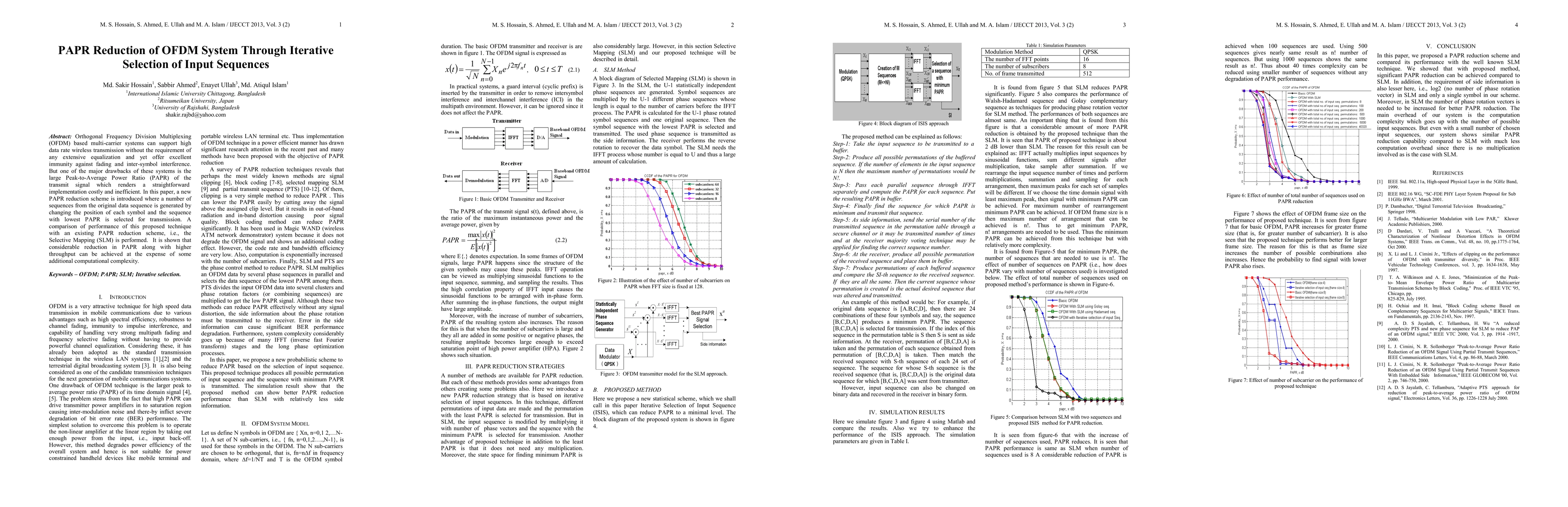 This paper proposes an iterative method for reducing PAPR in OFDM systems by selecting sequences with the lowest PAPR from modified versions of the original data. Compared to the Selective Mapping method, this approach offers significant PAPR reduction and higher throughput, albeit with increased computational complexity.