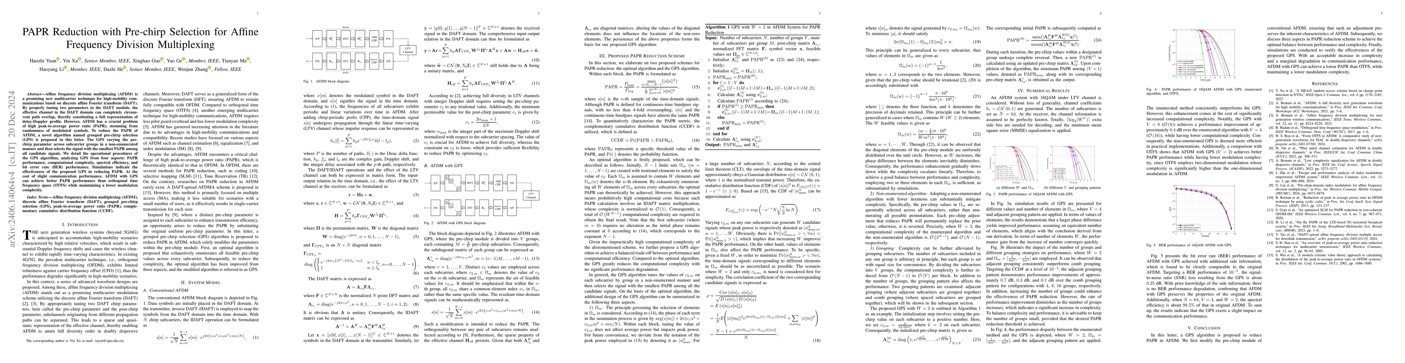 This paper proposes a grouped pre-chirp selection (GPS) algorithm to reduce the high peak-to-average power ratio (PAPR) in affine frequency division multiplexing (AFDM) systems. The GPS algorithm adjusts pre-chirp parameters in sub-carrier groups, maintaining AFDM system properties while effectively lowering PAPR and offering computational complexity benefits.
