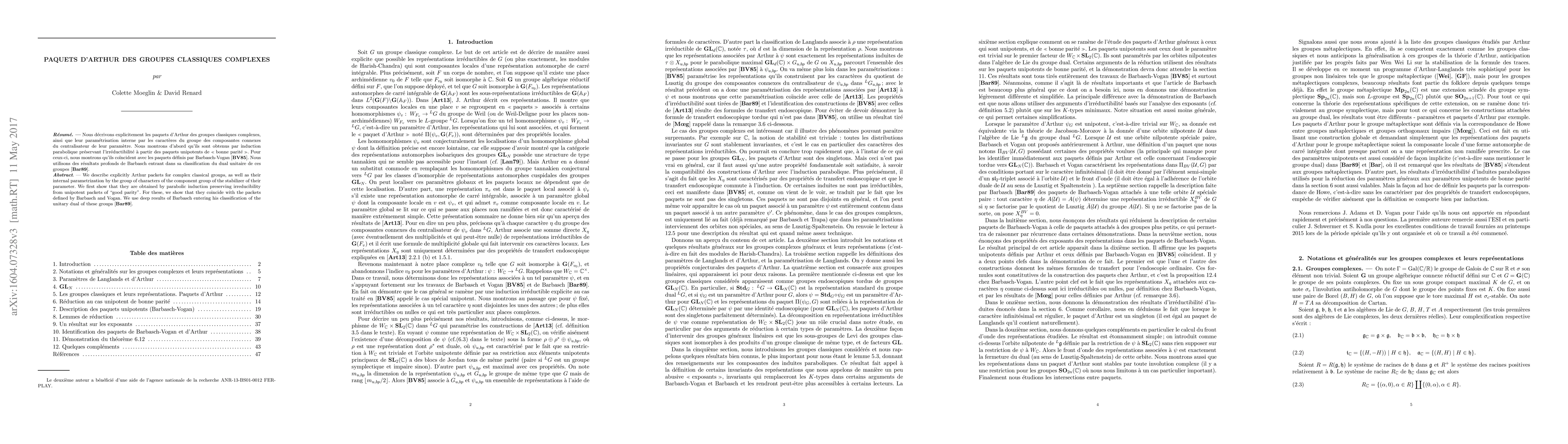 This work provides a detailed construction and classification of Arthur packets for complex classical groups, contributing to representation theory and harmonic analysis over these groups.