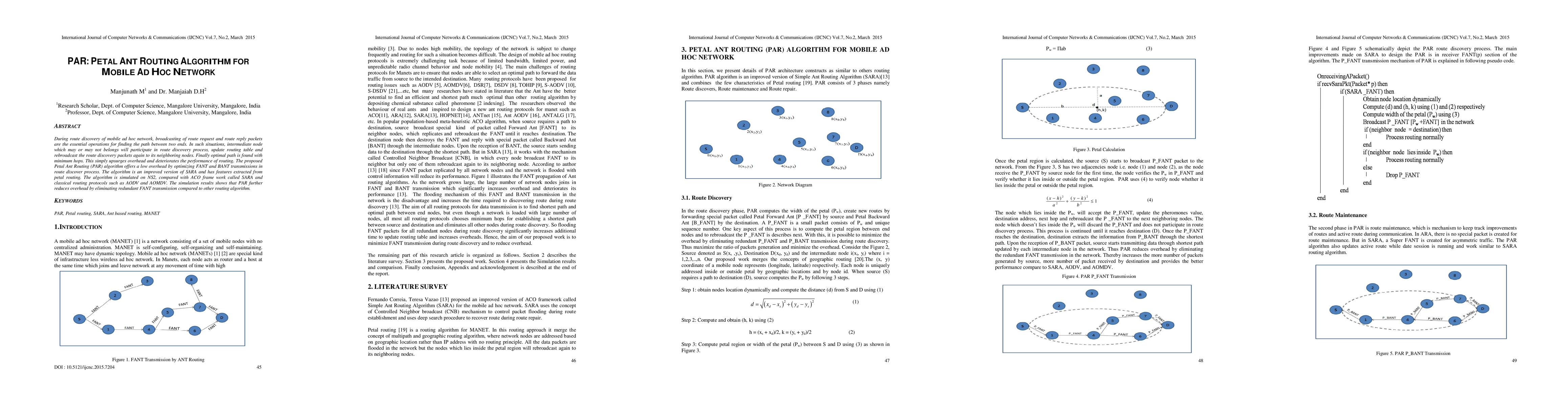 The Petal Ant Routing (PAR) algorithm optimizes route discovery in mobile ad hoc networks by minimizing overhead through reduced FANT and BANT transmissions, outperforming SARA and classical protocols like AODV and AOMDV in simulations. PAR achieves lower overhead by eliminating redundant FANT transmissions.