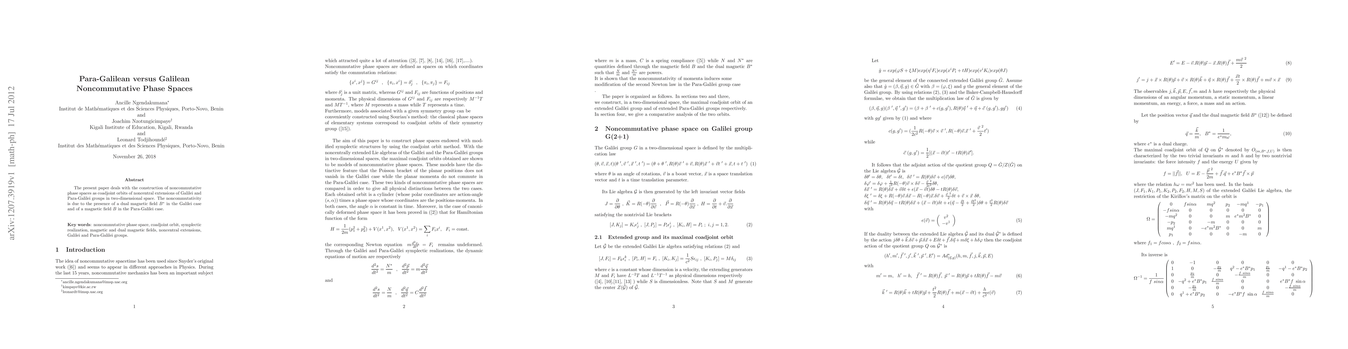 The present paper deals with the construction of noncommutative phase spaces as coadjoint orbits of noncentral extensions of Galilei and Para-Galilei groups in two-dimensional space. The noncommutativity is due to the presence of a dual magnetic field B* in the Galilei case and of a magnetic field B in the Para-Galilei case.