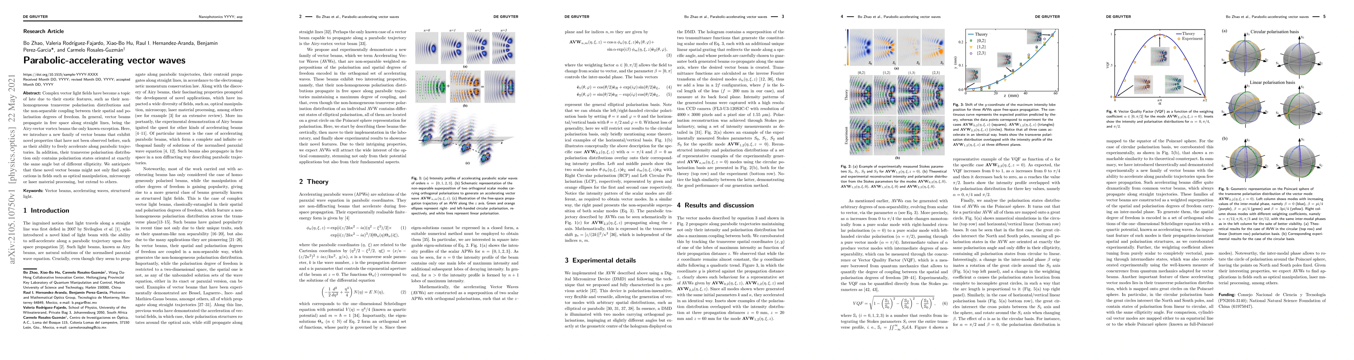 Complex vector light fields have become a topic of late due to their exotic features, such as their non--homogeneous transverse polarisation distributions and the non-separable coupling between their spatial and polarisation degrees of freedom. In general, vector beams propagate in free space along straight lines, being the Airy-vector vortex beams the only known exception. Here, we introduce a new family of vector beams that exhibit novel properties that have not been observed before, such as their ability to freely accelerate along parabolic trajectories. In addition, their transverse polarisation distribution only contains polarisation states oriented at exactly the same angle but of different ellipticity. We anticipate that these novel vector beams might not only find applications in fields such as optical manipulation, microscopy or laser material processing, but extend to others.
