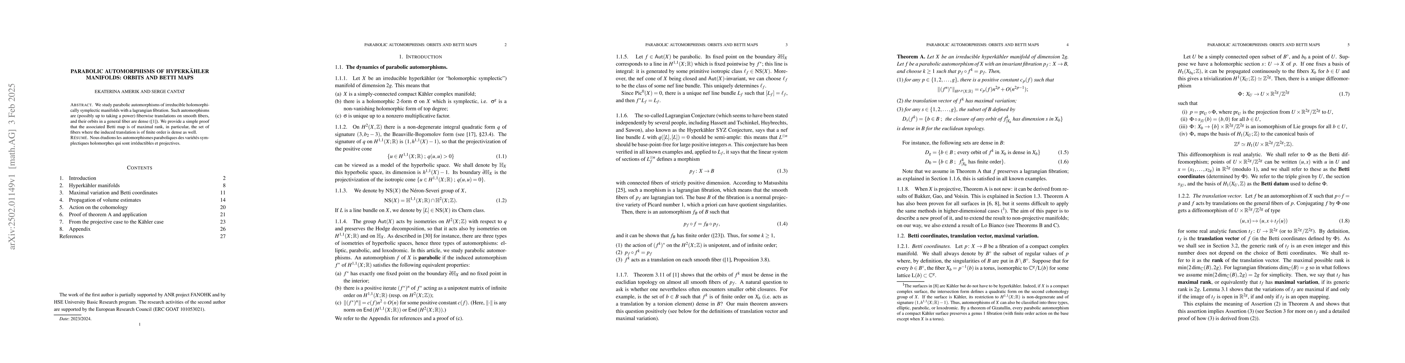 The research focuses on parabolic automorphisms of irreducible holomorphically symplectic manifolds with a lagrangian fibration, providing a proof that the associated Betti map is of maximal rank.