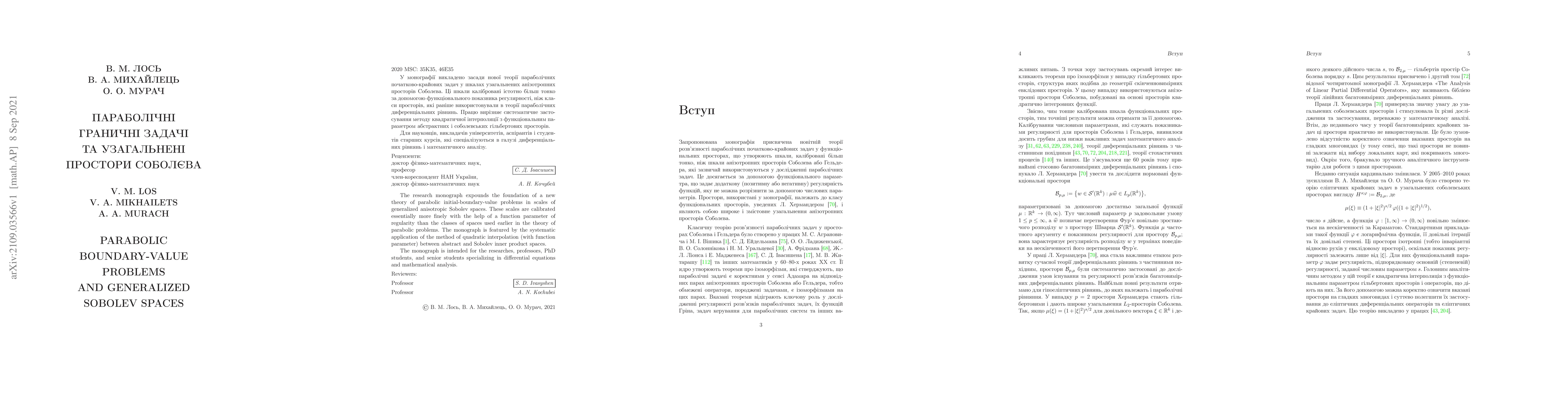 This monograph develops a new theory for parabolic boundary-value problems using finely calibrated generalized anisotropic Sobolev spaces and employs the method of quadratic interpolation with a function parameter of regularity. Aimed at researchers and advanced students in differential equations and mathematical analysis.