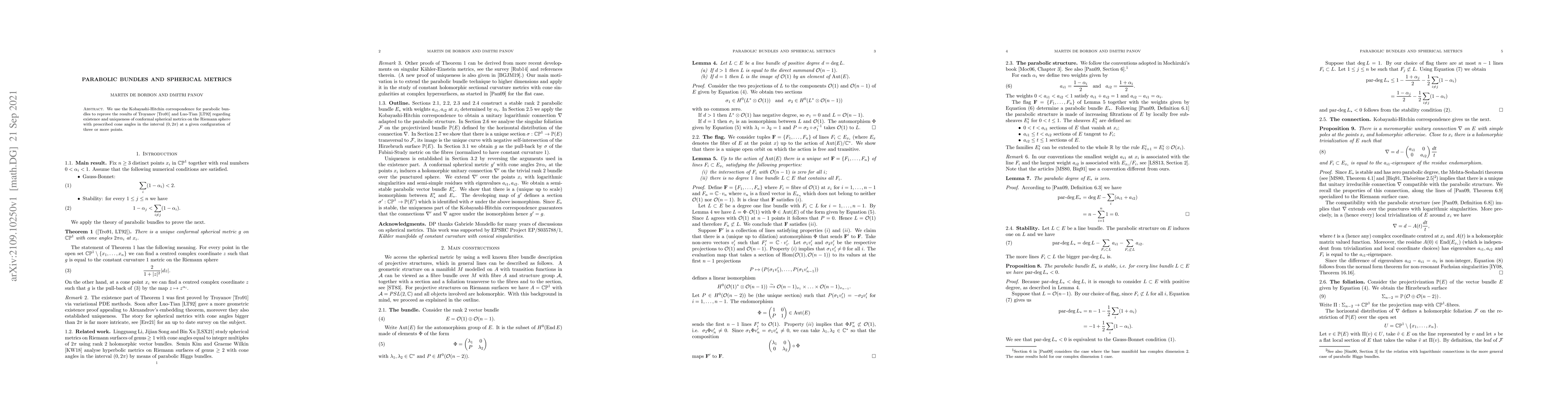 This paper reconfirms the existence and uniqueness of conformal spherical metrics on the Riemann sphere with prescribed cone angles using the Kobayashi-Hitchin correspondence for parabolic bundles.