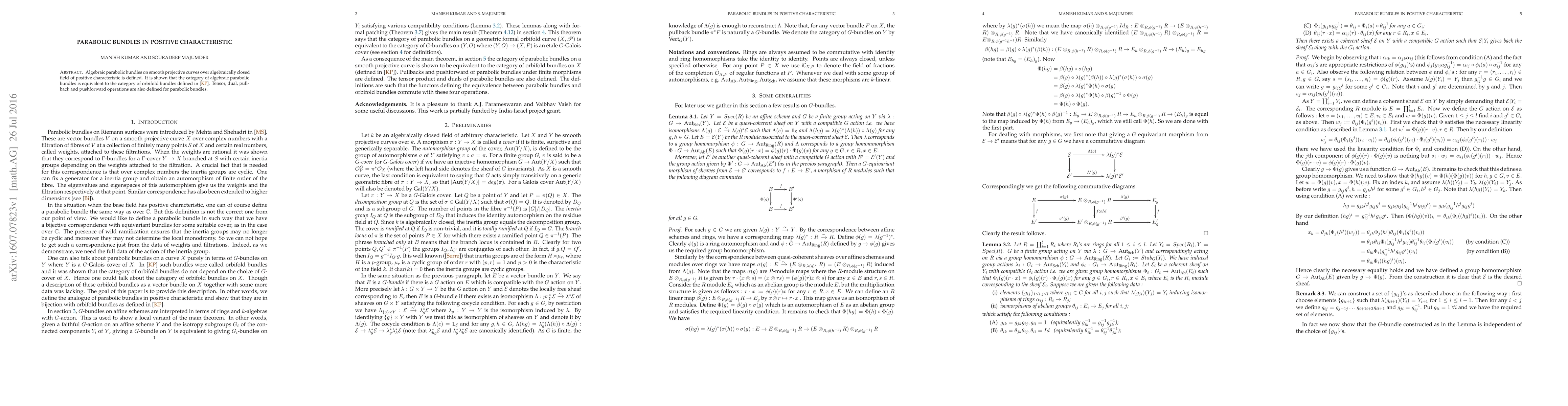 This paper defines algebraic parabolic bundles on smooth projective curves over positive characteristic fields and proves their category is equivalent to that of orbifold bundles. It also introduces tensor, dual, pullback, and pushforward operations for these bundles.