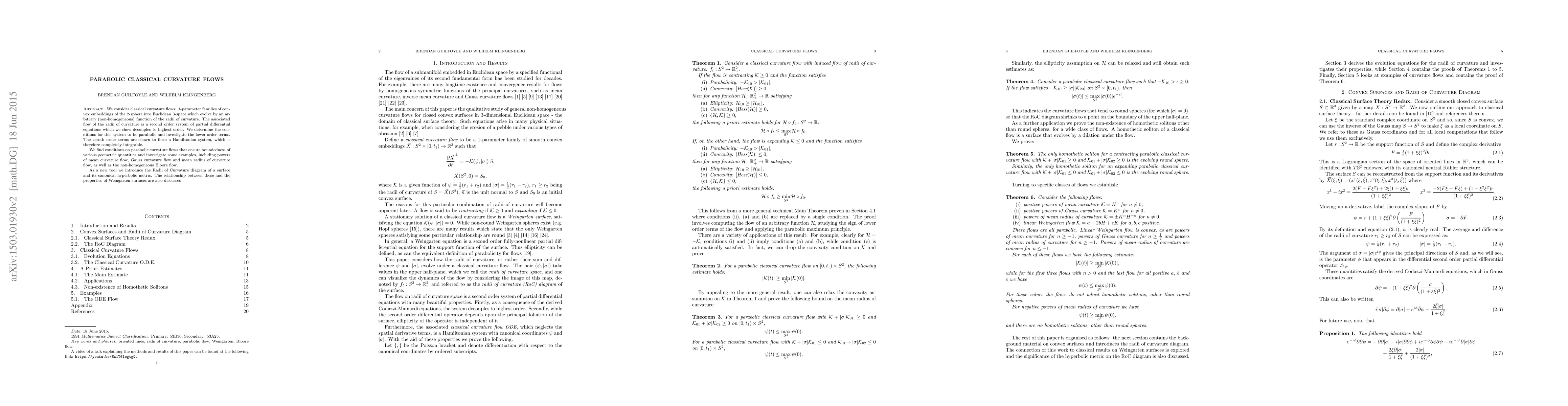 We consider classical curvature flows: 1-parameter families of convex embeddings of the 2-sphere into Euclidean 3-space which evolve by an arbitrary (non-homogeneous) function of the radii of curvature. The associated flow of the radii of curvature is a second order system of partial differential equations which we show decouples to highest order. We determine the conditions for this system to be parabolic and investigate the lower order terms. The zeroth order terms are shown to form a Hamiltonian system, which is therefore completely integrable. We find conditions on parabolic curvature flows that ensure boundedness of various geometric quantities and investigate some examples, including powers of mean curvature flow, Gauss curvature flow and mean radius of curvature flow, as well as the non-homogeneous Bloore flow. As a new tool we introduce the Radii of Curvature diagram of a surface and its canonical hyperbolic metric. The relationship between these and the properties of Weingarten surfaces are also discussed.