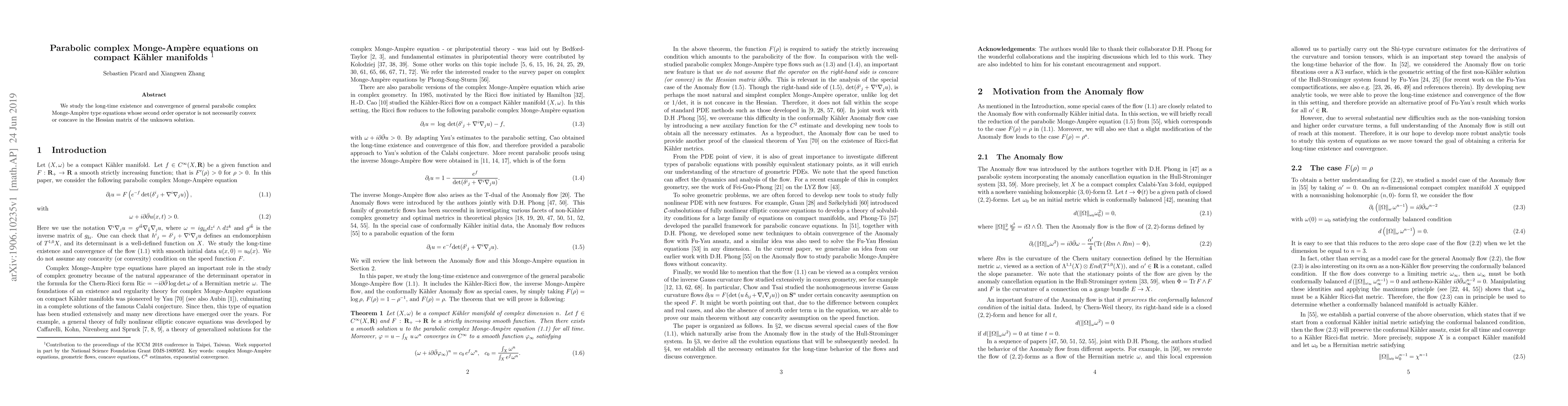 This paper investigates the long-term existence and convergence of parabolic complex Monge-Ampere equations on compact Kähler manifolds, focusing on scenarios where the second-order operator does not require convexity or concavity in the Hessian matrix of the solution.