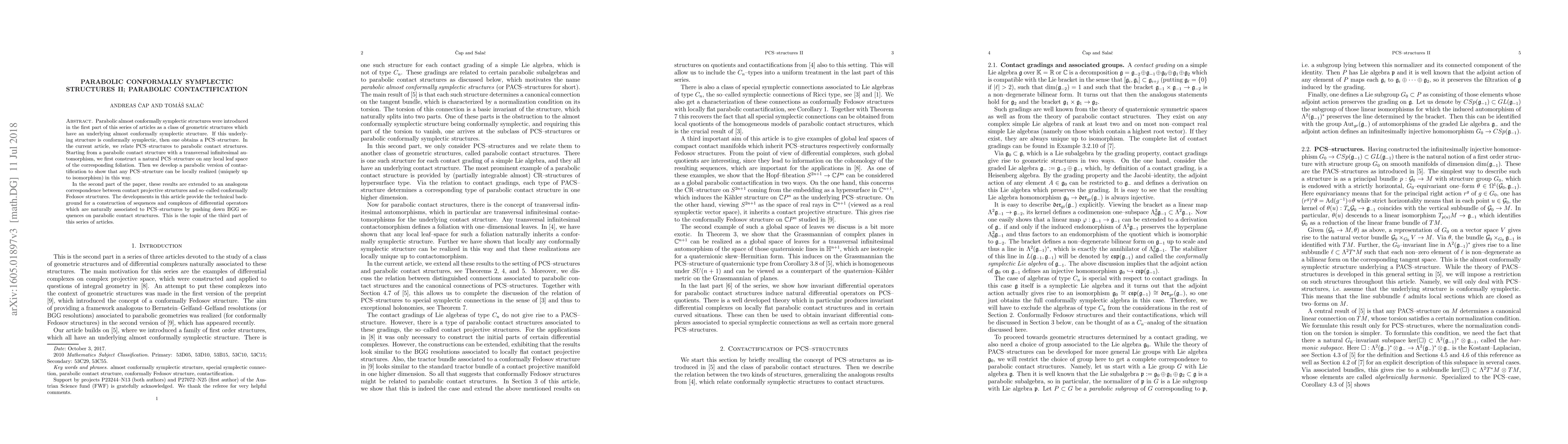 This paper explores parabolic almost conformally symplectic structures (PCS-structures), relating them to parabolic contact structures and introducing a parabolic version of contactification. It establishes that any PCS-structure can be locally realized via a parabolic contact structure, extending these results to contact projective structures and conformally Fedosov structures.