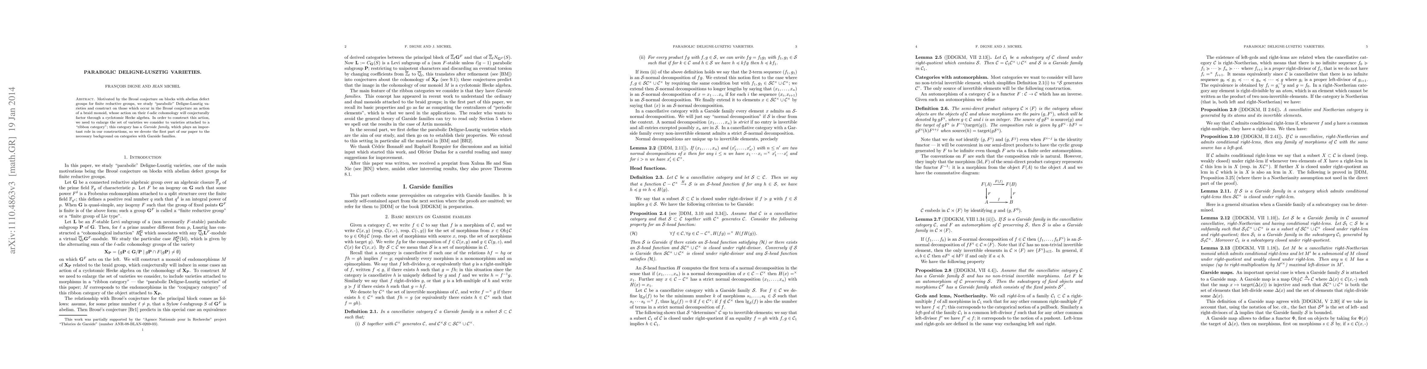 This paper explores "parabolic" Deligne-Lusztig varieties in the context of the Broué conjecture, constructing an action of a braid monoid on these varieties that is conjectured to factor through a cyclotomic Hecke algebra. The study necessitates an introduction to categories with Garside families, which are essential for the construction of the braid monoid action.