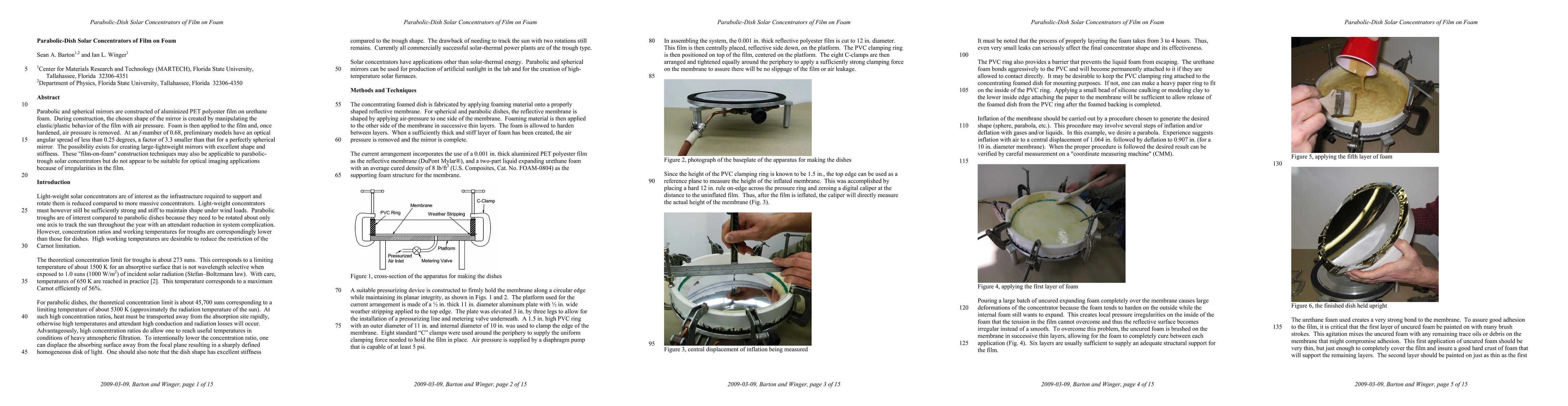 This paper explores the construction of parabolic and spherical mirrors using aluminized PET film on urethane foam, achieving an optical angular spread of less than 0.25 degrees. The technique allows for lightweight, large mirrors with good shape and stiffness, though it is not suitable for optical imaging due to film irregularities.