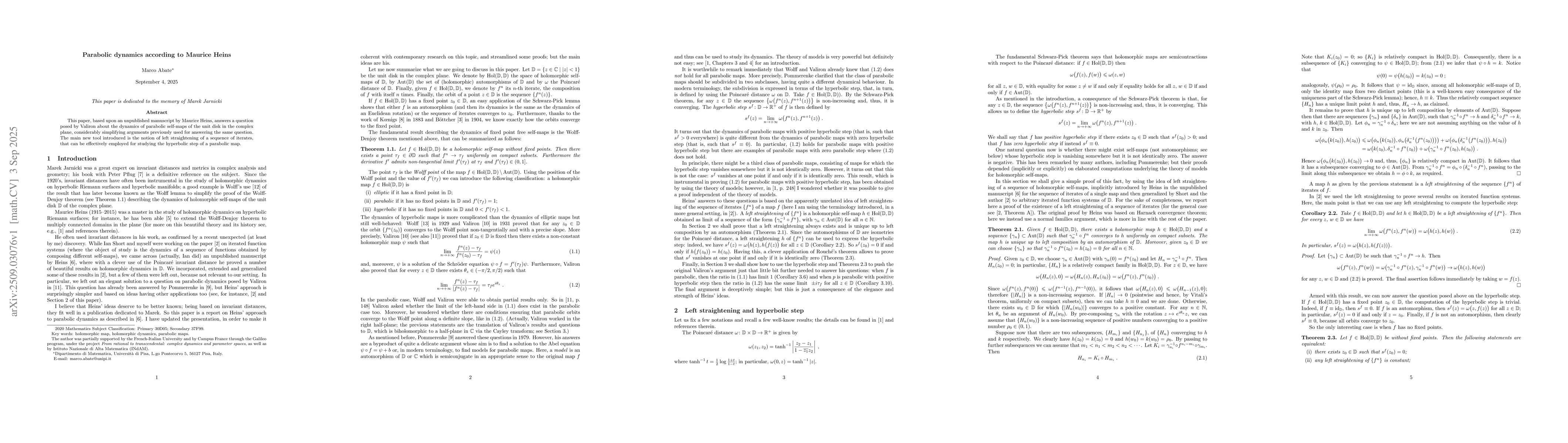 This paper, based upon an unpublished manuscript by Maurice Heins, answers a question posed by Valiron about the dynamics of parabolic self-maps of the unit disk in the complex plane, considerably simplifying arguments previously used for answering the same question. The main new tool introduced is the notion of left straightening of a sequence of iterates, that can be effectively employed for studying the hyperbolic step of a parabolic map.