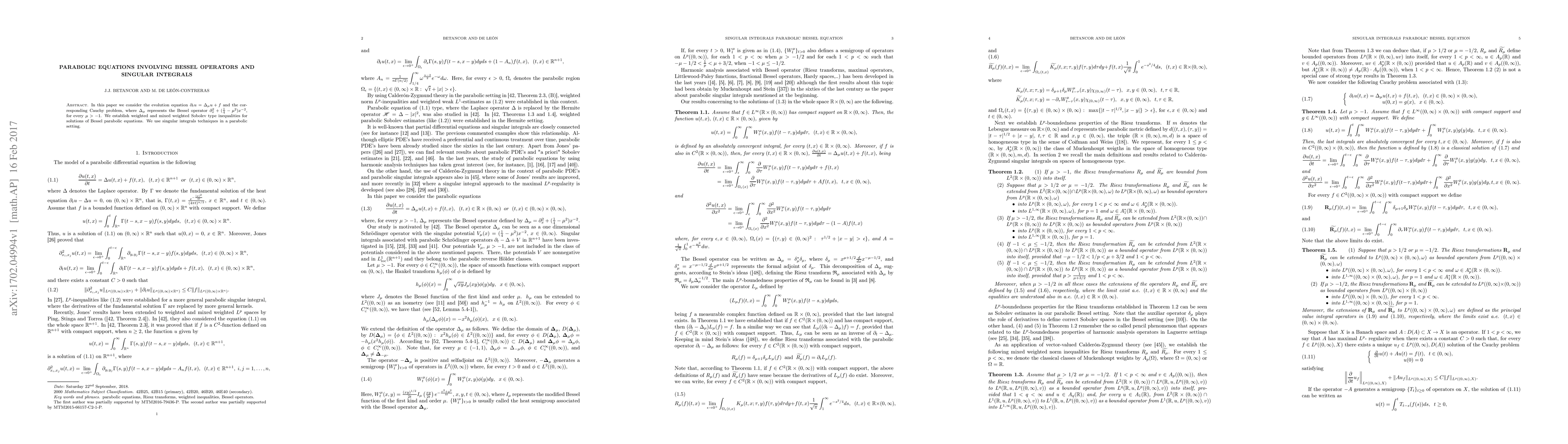 In this paper we consider the evolution equation $\partial_t u=\Delta_\mu u+f$ and the corresponding Cauchy problem, where $\Delta_\mu$ represents the Bessel operator $\partial_x^2+(\frac{1}{4}-\mu^2)x^{-2}$, for every $\mu>-1$. We establish weighted and mixed weighted Sobolev type inequalities for solutions of Bessel parabolic equations. We use singular integrals techniques in a parabolic setting.