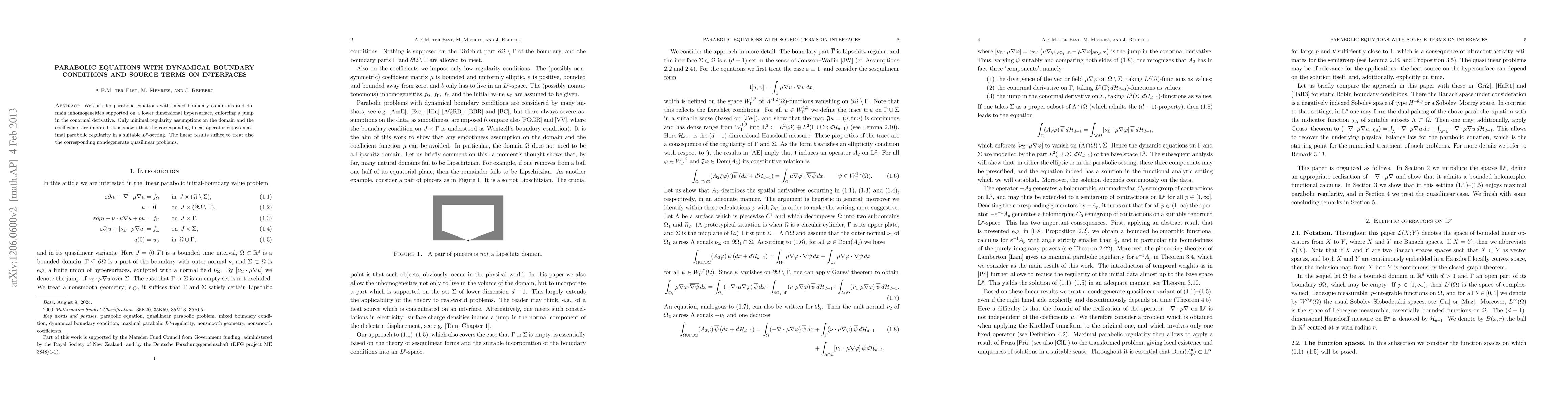 This paper investigates parabolic equations with mixed boundary conditions and inhomogeneities on lower-dimensional interfaces, demonstrating maximal parabolic regularity for the linear operator under minimal assumptions. The findings also extend to solving corresponding quasilinear problems.