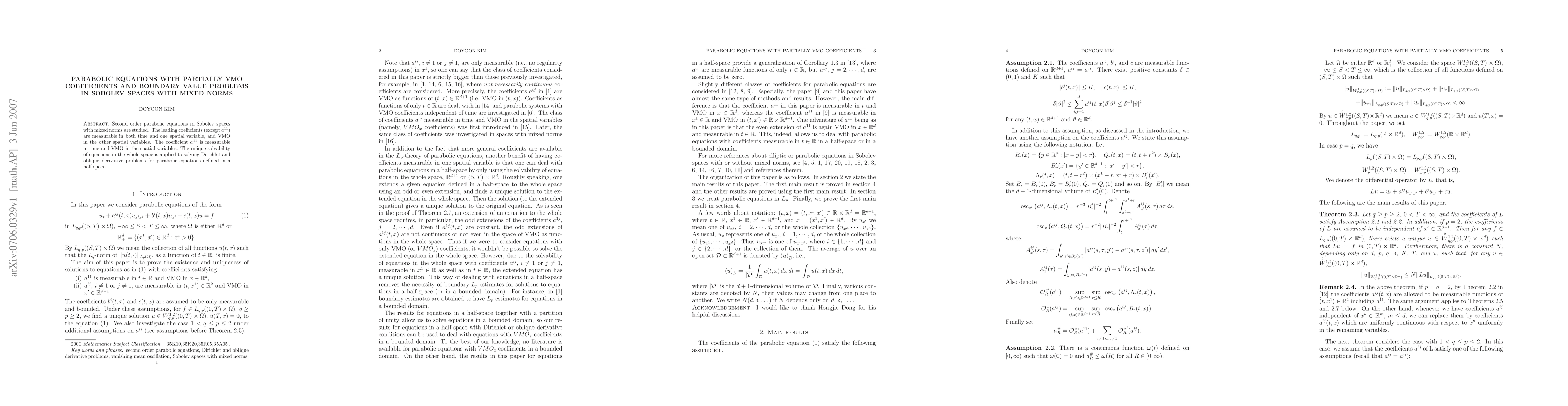 Second order parabolic equations in Sobolev spaces with mixed norms are studied. The leading coefficients (except $a^{11}$) are measurable in both time and one spatial variable, and VMO in the other spatial variables. The coefficient $a^{11}$ is measurable in time and VMO in the spatial variables. The unique solvability of equations in the whole space is applied to solving Dirichlet and oblique derivative problems for parabolic equations defined in a half-space.