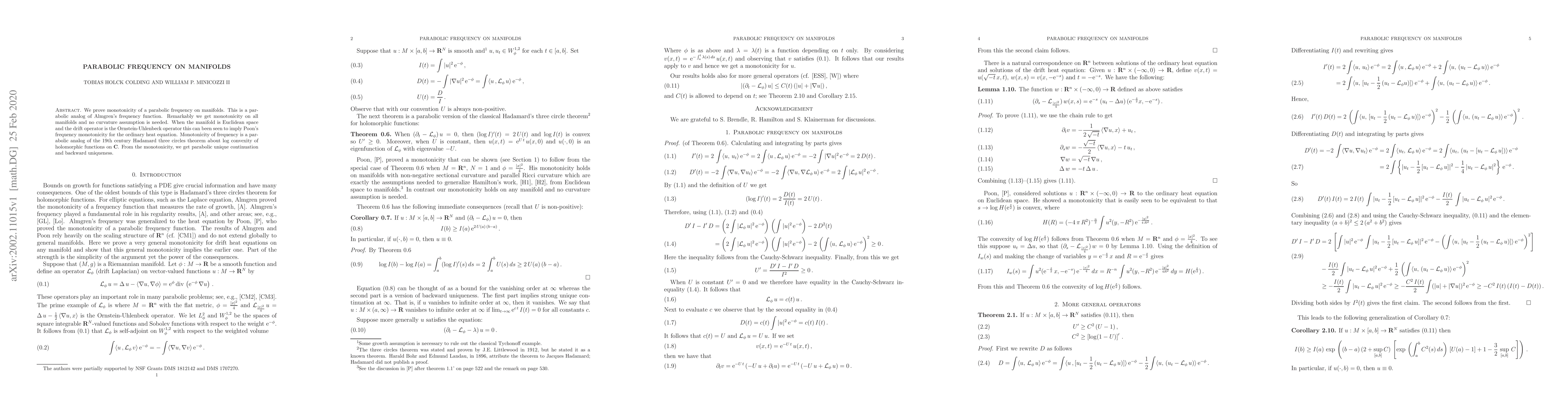 We prove monotonicity of a parabolic frequency on manifolds. This is a parabolic analog of Almgren's frequency function. Remarkably we get monotonicity on all manifolds and no curvature assumption is needed. When the manifold is Euclidean space and the drift operator is the Ornstein-Uhlenbeck operator this can been seen to imply Poon's frequency monotonicity for the ordinary heat equation. Monotonicity of frequency is a parabolic analog of the 19th century Hadamard three circles theorem about log convexity of holomorphic functions on $\CC$. From the monotonicity, we get parabolic unique continuation and backward uniqueness.