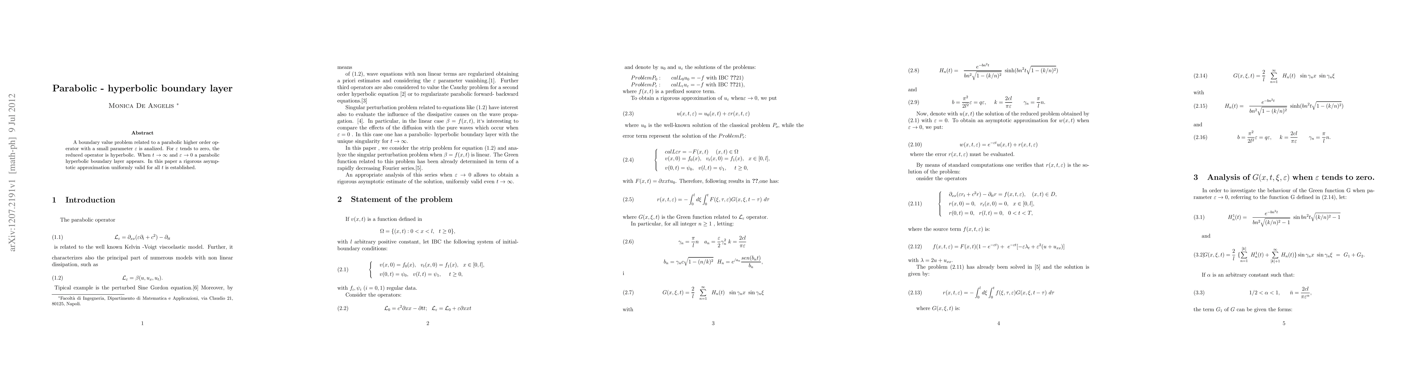 A boundary value problem related to a parabolic higher order operator with a small parameter is analized. When the small parameter tends to zero, the reduced operator is hyperbolic. When t tends to infinity a parabolic hyperbolic boundary layer appears. In this paper a rigorous asymptotic approximation uniformly valid for all t is established.