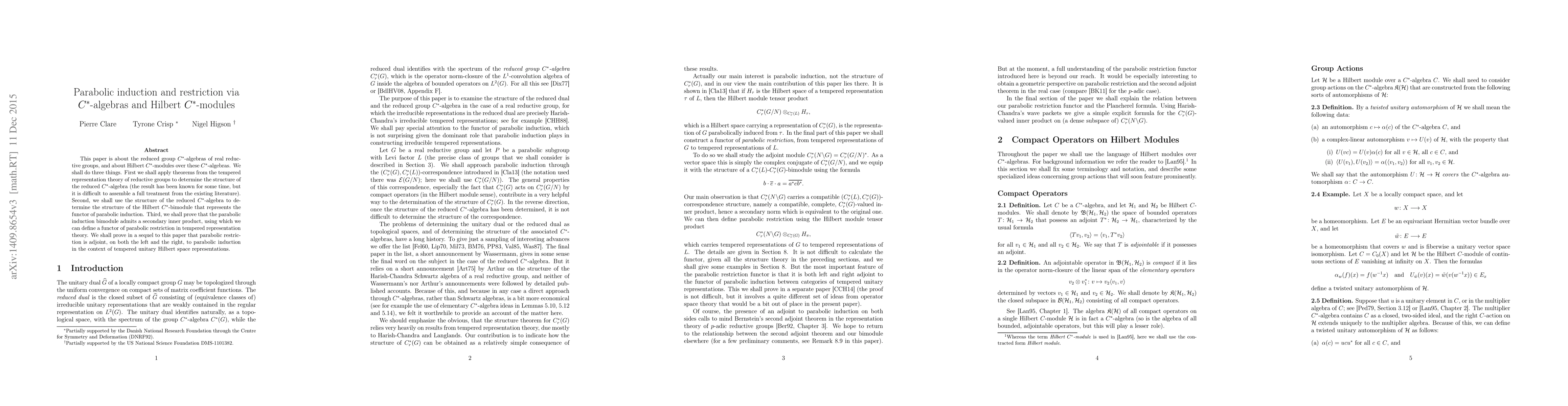 This paper explores the reduced group C*-algebras of real reductive groups and their associated Hilbert C*-modules, applying theorems from tempered representation theory to determine the structure of these algebras. It also proves that the parabolic induction bimodule admits a secondary inner product, enabling the definition of a parabolic restriction functor.