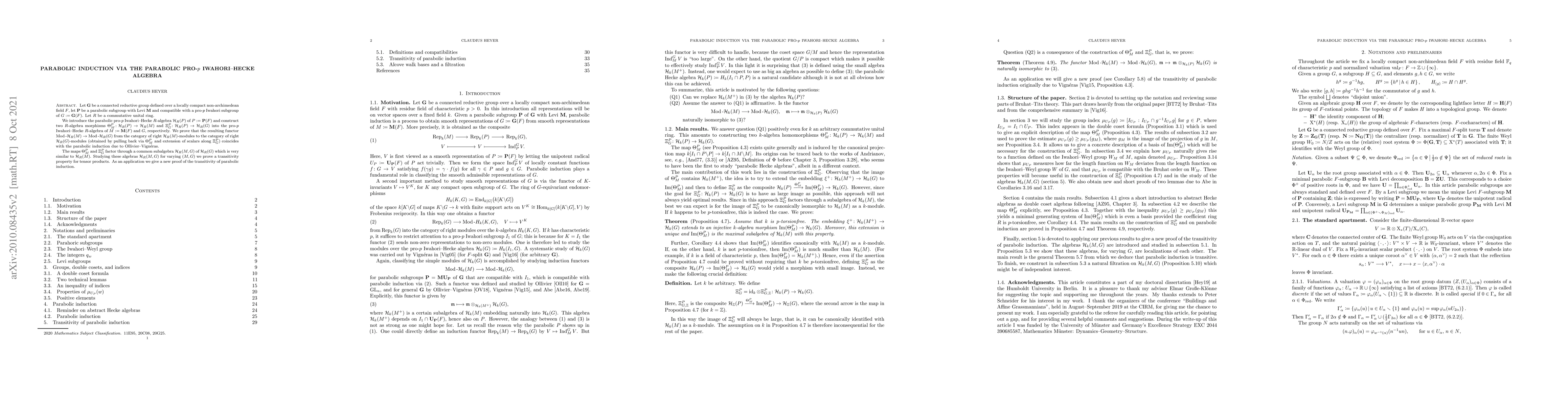 This paper introduces the parabolic pro-$p$ Iwahori--Hecke $R$-algebra and constructs morphisms linking it to the algebras of Levi subgroups and the whole group. It proves that these morphisms induce the parabolic induction functor and establishes a transitivity property for tensor products, providing a new proof for the transitivity of parabolic induction.
