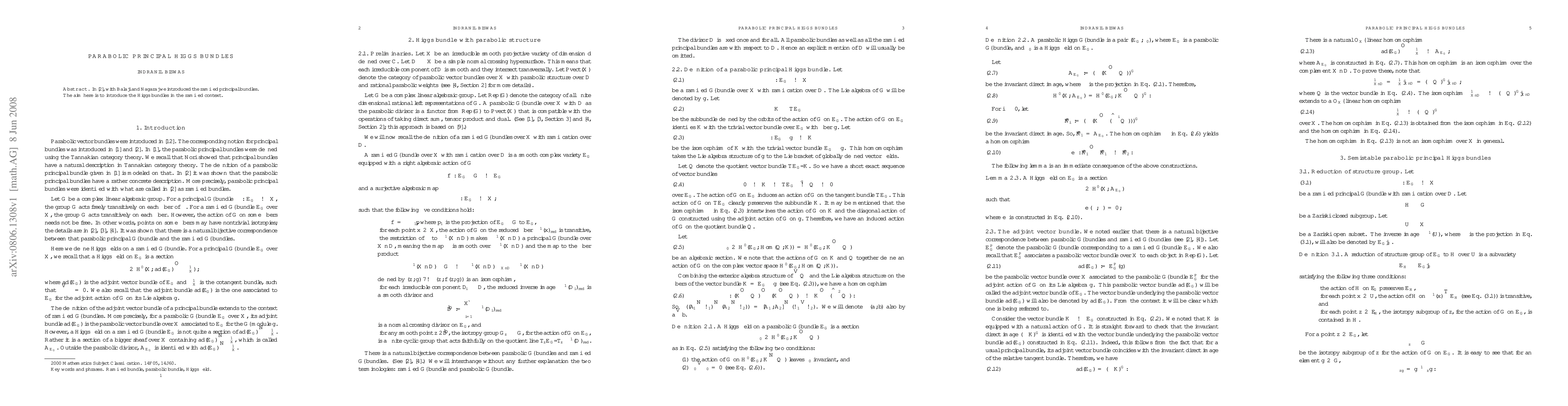 This paper defines parabolic principal Higgs bundles, extending the concept of ramified principal bundles introduced previously in collaboration with Balaji and Nagaraj, to incorporate Higgs fields in the ramified context.