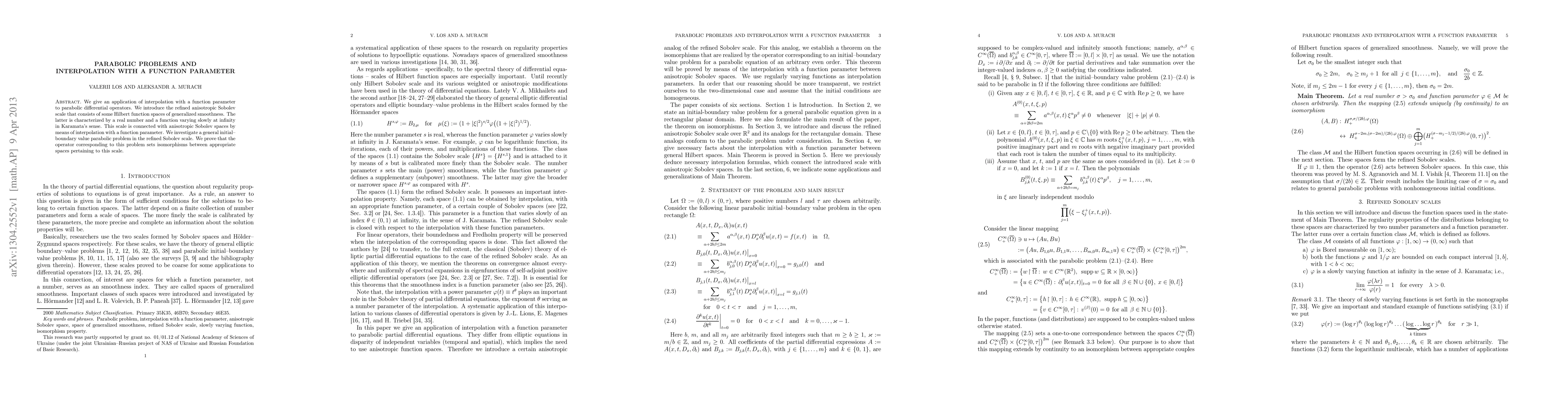 We give an application of interpolation with a function parameter to parabolic differential operators. We introduce the refined anisotropic Sobolev scale that consists of some Hilbert function spaces of generalized smoothness. The latter is characterized by a real number and a function varying slowly at infinity in Karamata's sense. This scale is connected with anisotropic Sobolev spaces by means of interpolation with a function parameter. We investigate a general initial--boundary value parabolic problem in the refined Sobolev scale. We prove that the operator corresponding to this problem sets isomorphisms between appropriate spaces pertaining to this scale.