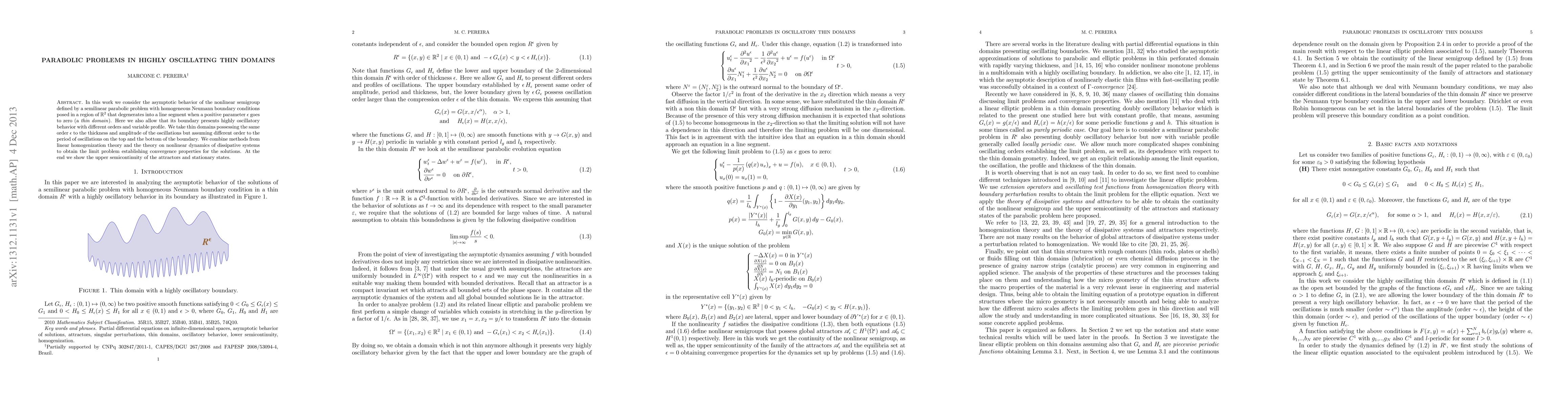 This paper investigates the asymptotic behavior of a semilinear parabolic problem in thin, oscillating domains, combining homogenization and nonlinear dynamics to establish convergence properties and the upper semicontinuity of attractors and stationary states. The study focuses on domains with varying oscillation periods and profiles.