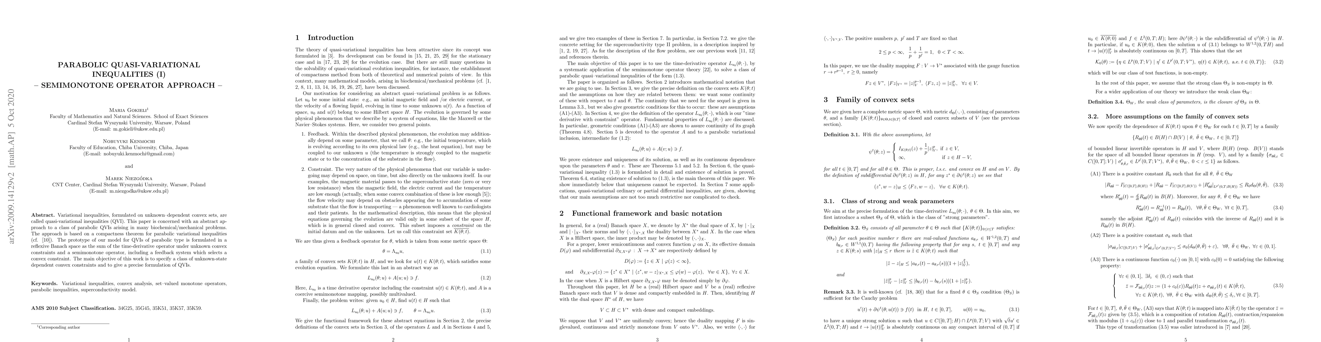 This paper explores parabolic quasi-variational inequalities (QVI) in reflexive Banach spaces, focusing on semimonotone operators and time-derivative operators under unknown convex constraints. The objective is to define a class of such constraints and provide a precise formulation for these inequalities.