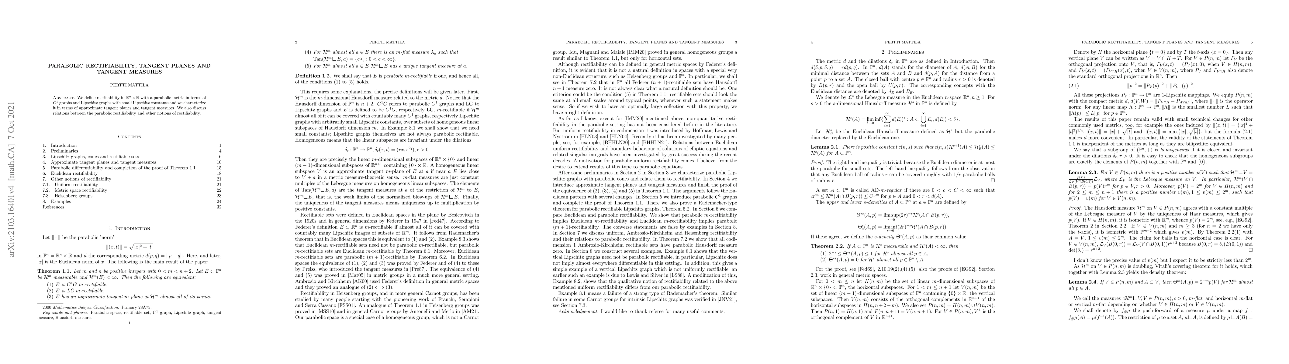 This paper defines rectifiability in $\mathbb{R}^{n}\times\mathbb{R}$ under a parabolic metric using $C^1$ and Lipschitz graphs, and characterizes it via approximate tangent planes and tangent measures. It also explores connections between parabolic rectifiability and other rectifiability concepts.