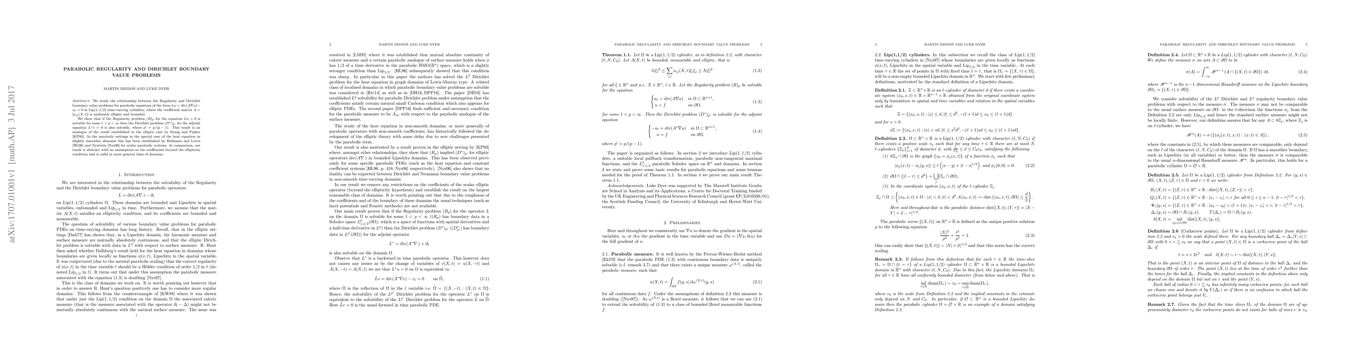 The paper studies the relationship between regularity and Dirichlet boundary value problems for parabolic equations in time-varying cylinders, using abstract conditions and extending previous results to more general classes of domains.