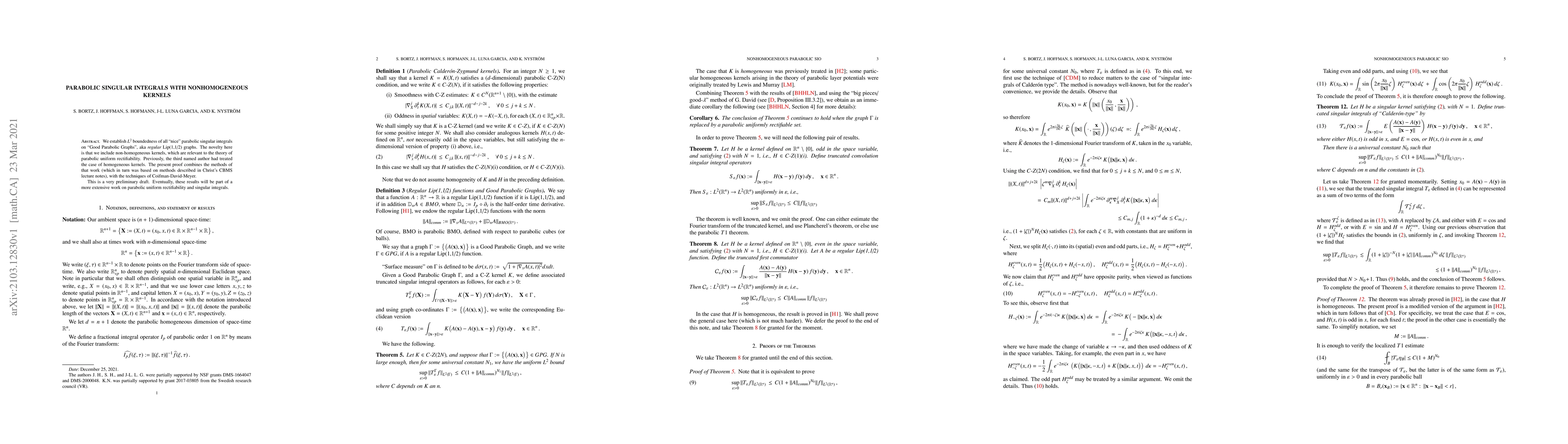 We establish $L^2$ boundedness of all "nice" parabolic singular integrals on "Good Parabolic Graphs", aka {\em regular} Lip(1,1/2) graphs. The novelty here is that we include non-homogeneous kernels, which are relevant to the theory of parabolic uniform rectifiability. Previously, the third named author had treated the case of homogeneous kernels. The present proof combines the methods of that work (which in turn was based on methods described in Christ's CBMS lecture notes), with the techniques of Coifman-David-Meyer. This is a very preliminary draft. Eventually, these results will be part of a more extensive work on parabolic uniform rectifiability and singular integrals.